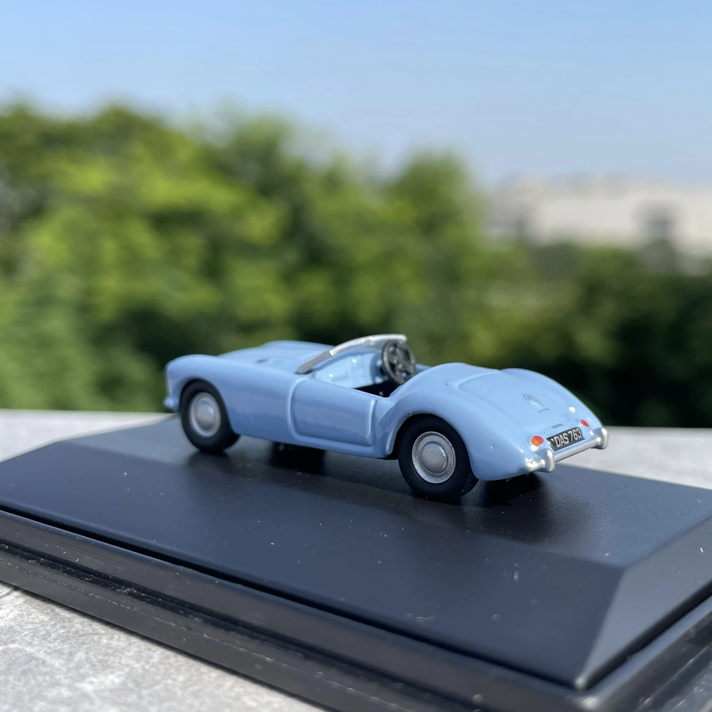 Experience the timeless charm of this 1:76 scale diecast model car, crafted from durable metal to showcase a vintage British design. With a glossy light blue finish, smooth rounded body, and authentic vintage details such as softly contoured headlights and a subtle grille, this collectible captures the essence of classic British sports cars. The transparent windshield reveals a simple black interior, while silver wheels with black rubber tires complete its nostalgic look. Perfect as a display piece or thoughtful gift, this highly detailed model is intended for collectors aged 14 and above, offering a refined glimpse into automotive history without the need for batteries or electrical components.