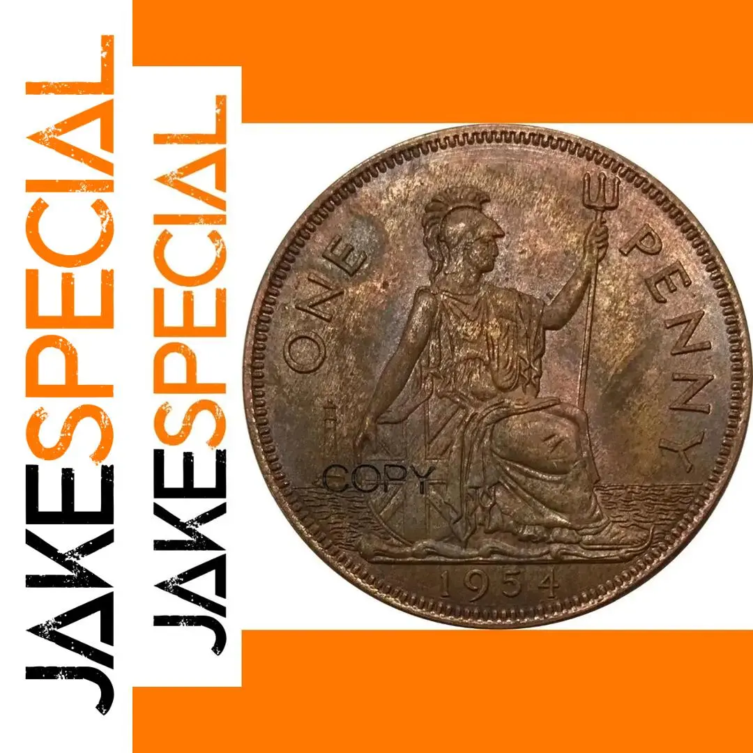 - Clear, well-defined inscriptions of “ONE PENCE” along the upper curve and the year “1954” at the bottom, all with fine lines that mirror the original coin’s craftsmanship.
