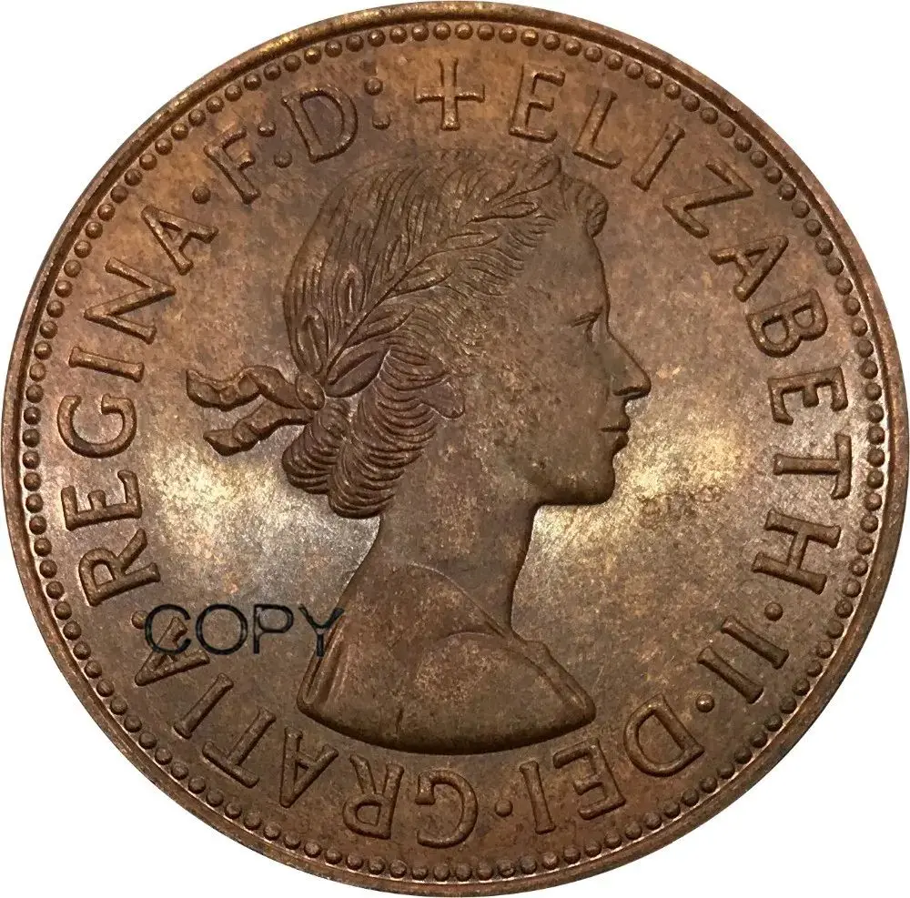 Imagine owning a beautifully crafted replica of the 1954 British one penny featuring Queen Elizabeth II. This coin exudes an antique aesthetic, with its bronze or copper coloration and textured surface that evoke an aged, historical look. The finely detailed portrait of Queen Elizabeth II, facing right and crowned, is surrounded by clear inscriptions of “ONE PENCE” and the year “1954.” The smooth edges and intricate craftsmanship highlight the coin’s high-quality design, making it an ideal addition to any collecting display. Whether you’re passionate about historical memorabilia or looking to enhance your collection with authentic-looking replicas, this coin provides an excellent visual and tactile experience. Its vintage style makes it stand out as a testament to craftsmanship and timeless appeal.
