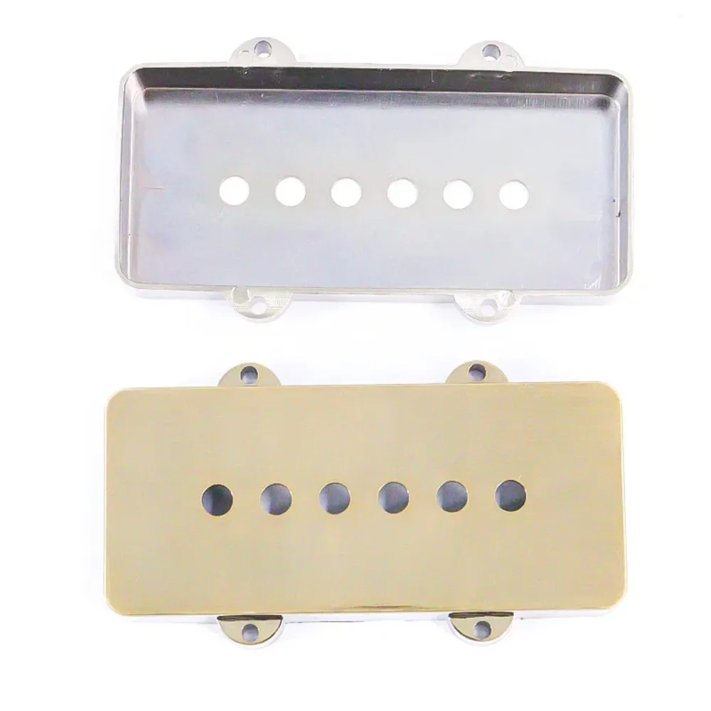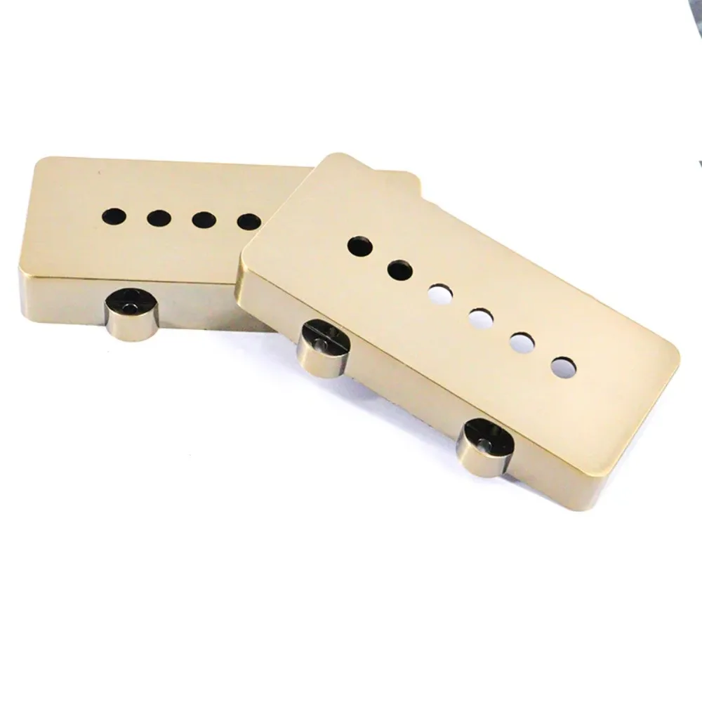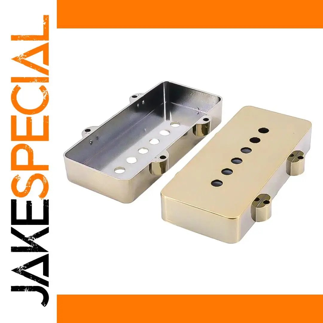 Enhance your Jazzmaster guitar with this set of two vintage bronze-colored pickup covers, crafted from high-quality durable plastic measuring 93mm by 41mm. Featuring a sleek, slotted design with evenly spaced openings, these replacement covers add a stylish, retro aesthetic while protecting your pickups. The glossy finish and rich, warm hue evoke a classic, antique brass look, perfect for customizing or restoring your instrument. Designed for easy installation, each cover includes rounded mounting tabs with screw holes—though screws are not included. These stylish, vintage-inspired covers make a perfect upgrade for discerning guitarists seeking a timeless, polished appearance.