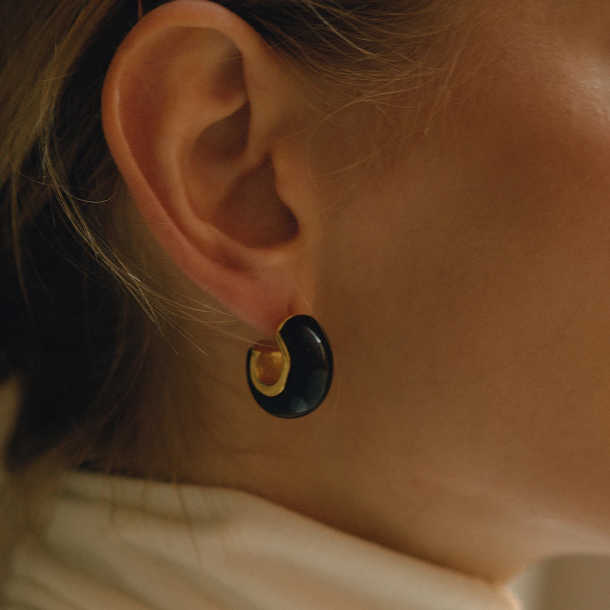 Discover these vintage-inspired C-shaped resin stud earrings, crafted from durable stainless steel with a luxurious gold-tone finish. Featuring a glossy, marbled surface in black, brown, and green, each pair showcases a striking geometric design that effortlessly combines classic charm with modern style. The secure push-back fastening ensures all-day comfort, making these earrings perfect for both casual outings and formal events. With thoughtfully designed dimensions for a comfortable fit, these versatile accessories are an excellent choice to elevate your wardrobe and express your individual style. Add a touch of vintage elegance with a contemporary twist—ideal for the sophisticated collector.