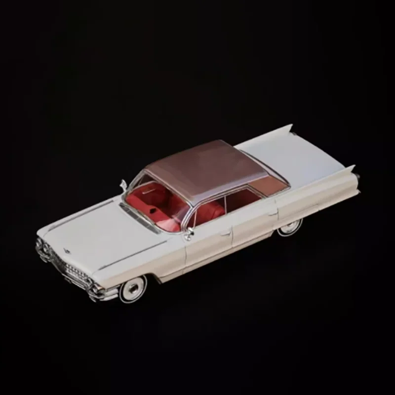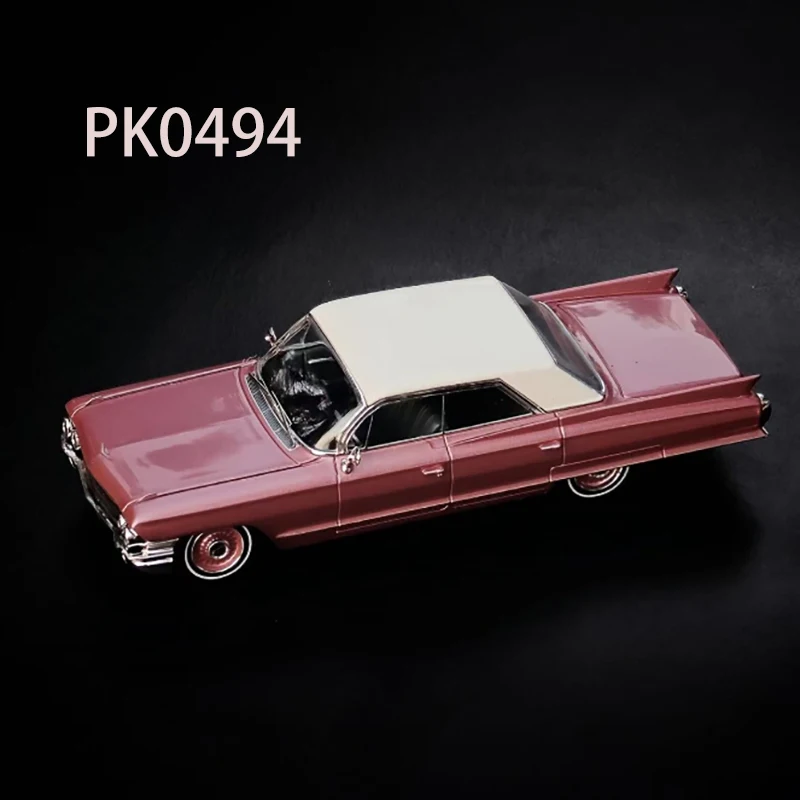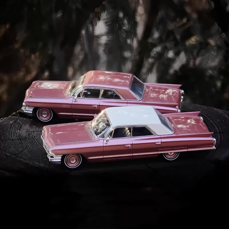 This 1/64 scale diecast alloy model of a classic Cadillac DeVille features a sleek, elongated body with a shiny metallic reddish-pink finish, complemented by a lighter-colored roof in options A, B, C, or D. Crafted from metal with plastic details, it showcases vintage design elements such as prominent tailfins, flowing curves, whitewall tires with red accents, and intricate hubcap detailing. Perfect for display, collection, or gift purposes, this highly detailed static model emphasizes nostalgic luxury and timeless style. Recommended for collectors aged 14 and above, it does not include electronic features or moving parts, making it an elegant decorative piece.