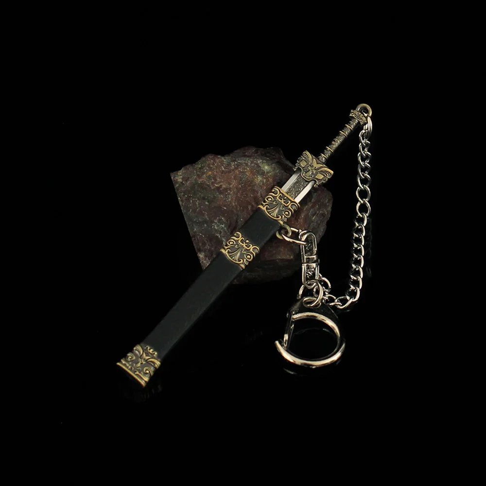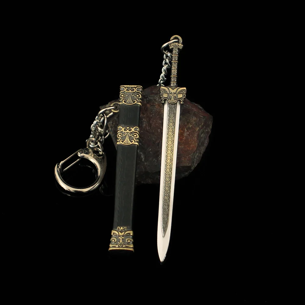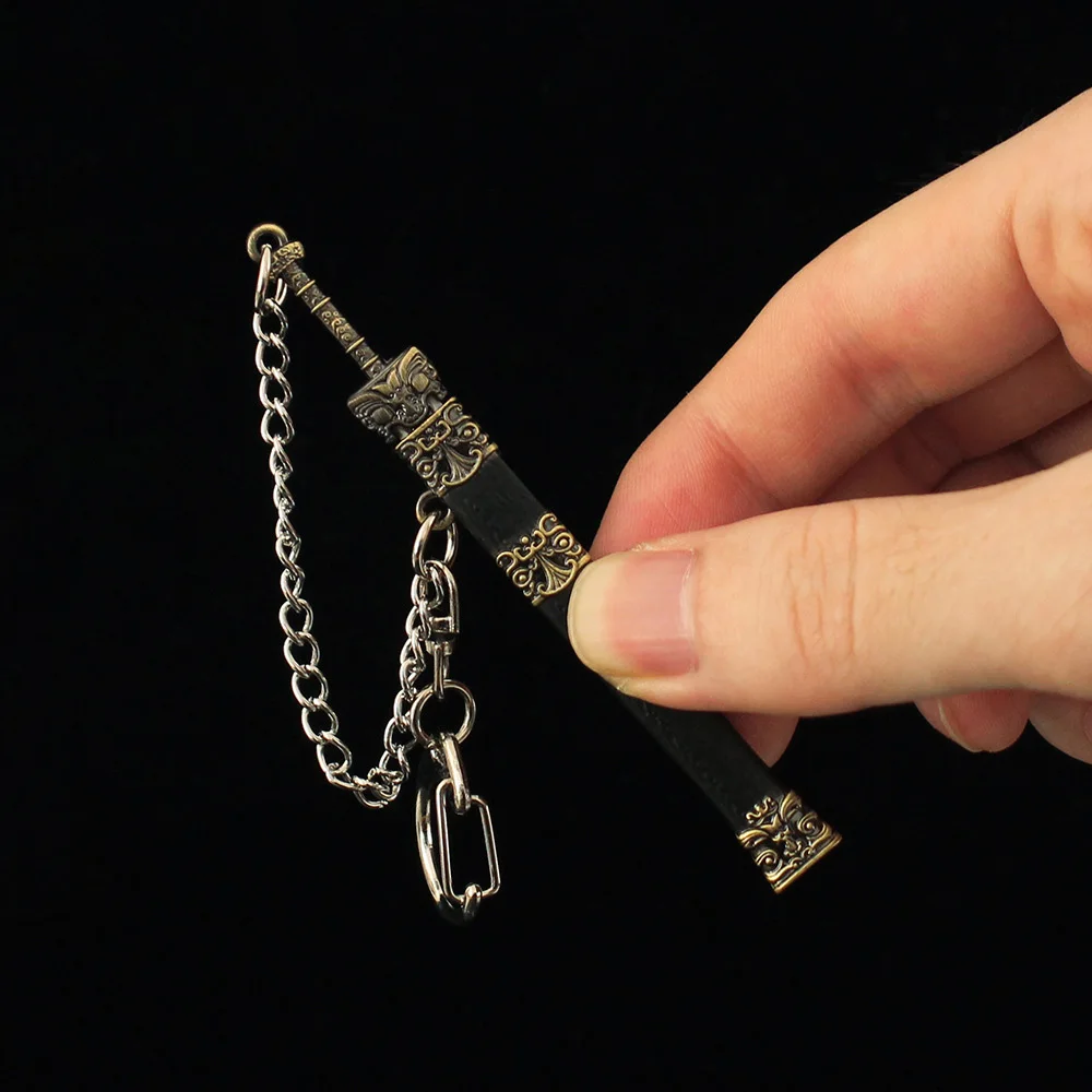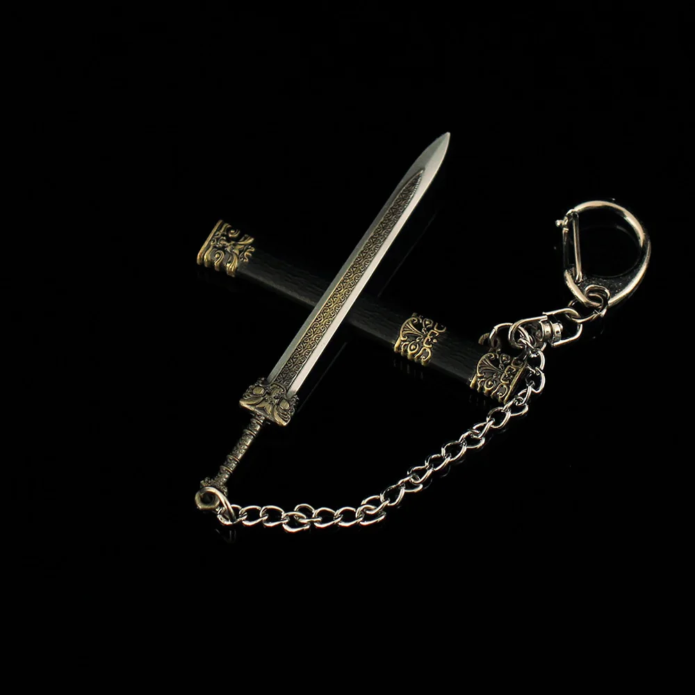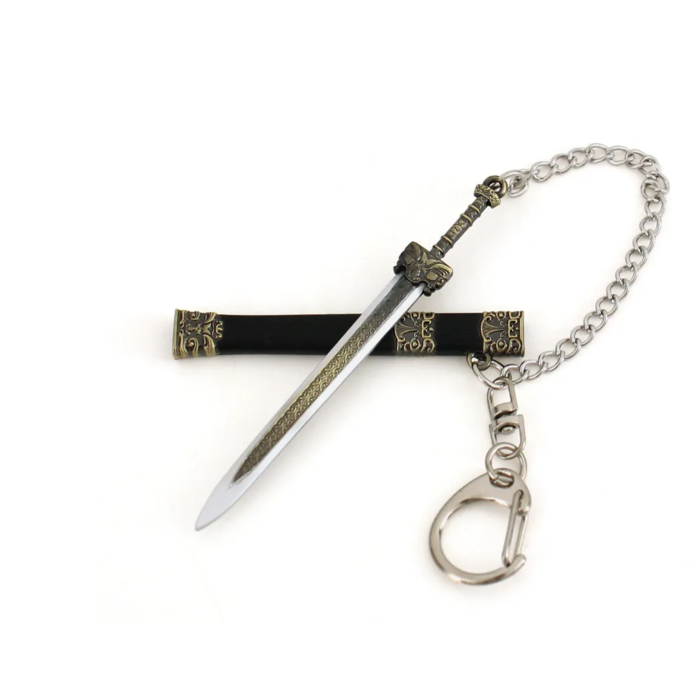 Enhance your daily accessories with this beautifully crafted vintage-inspired keychain. Measuring approximately 9cm, it features a stunning antique bronze finish with gold accents that evoke timeless craftsmanship. The ornate handle, inspired by traditional Chinese weaponry, showcases intricate engraved patterns and a spike-shaped design, adding both elegance and historical charm. The detailed metalwork reflects artisanal skill, transforming an everyday item into a striking piece of wearable art. Its versatile size makes it perfect for attaching to keys, bags, or other accessories, while its durable zinc alloy construction ensures long-lasting use. Whether as a collector's item or a standout accessory, this keychain offers a perfect blend of antique allure and modern utility.