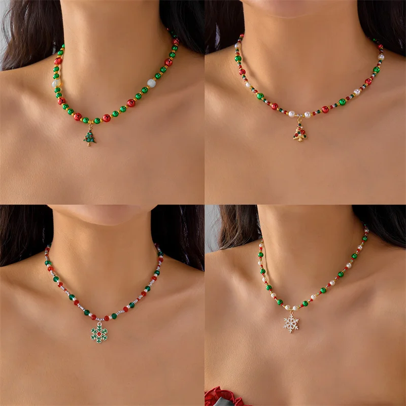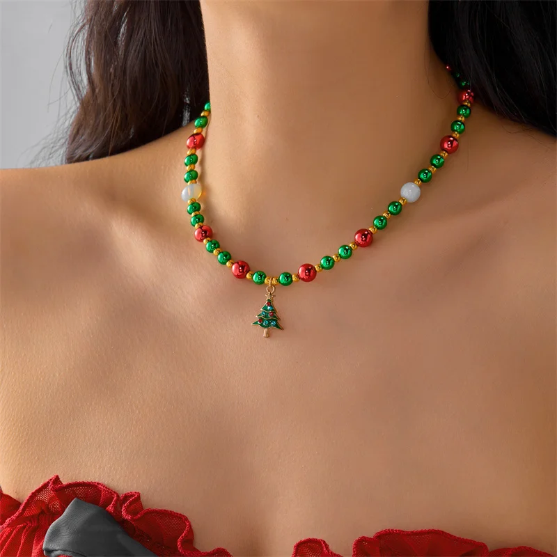 Step into the holiday spirit and imagine yourself wearing this charming vintage-inspired Christmas necklace. Crafted with care, each piece features a vibrant blend of red, green, white, and gold beads arranged in cheerful patterns. The beaded chain, made of durable acrylic, complements the whimsical snowflake and Christmas tree pendants, bringing a nostalgic yet joyful vibe to your holiday wardrobe. The necklace’s collarbone-length link chain, available in five elegant metal colors, offers a layered, colorful look perfect for any celebratory occasion. Whether you're attending a holiday party or gifting a loved one, this necklace adds a touch of warmth, sparkle, and festive cheer. Its intricate design and shimmering accents make it an eye-catching accessory that captures the magic of Christmas.