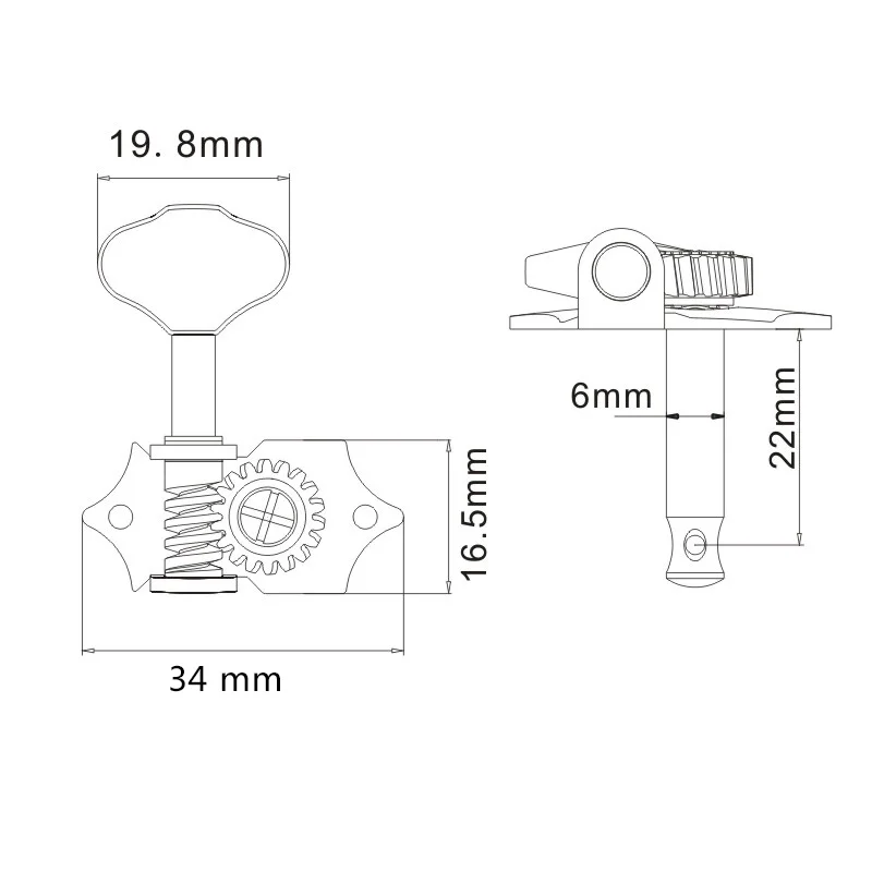 - Dimensions as shown in the images ensure compatibility with standard open gear tuning machines, suitable for various headstock sizes and configurations.