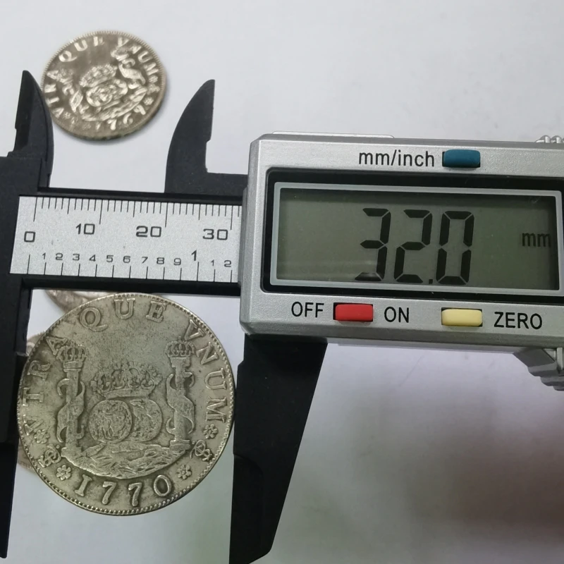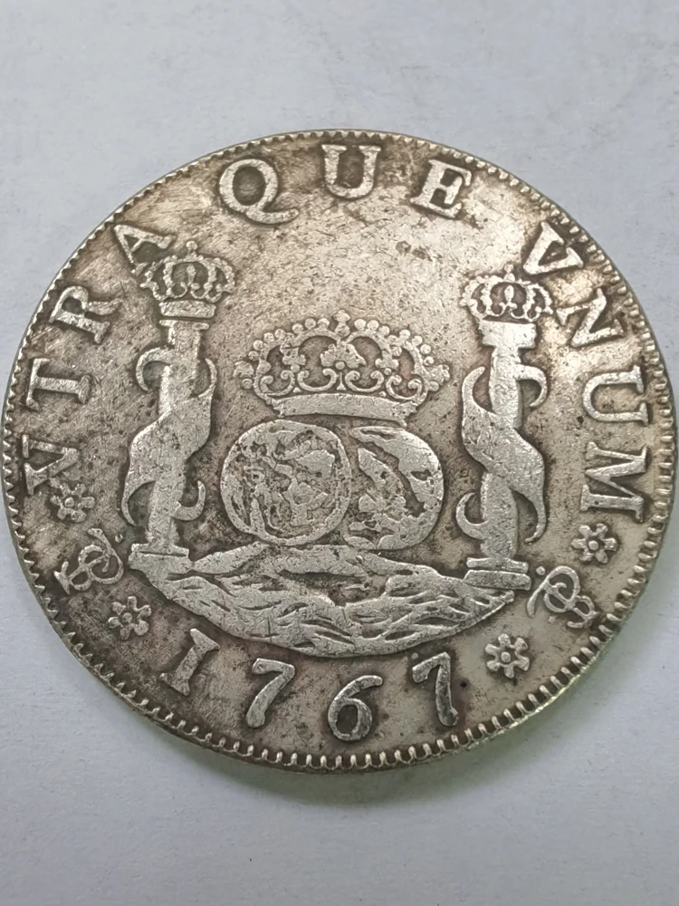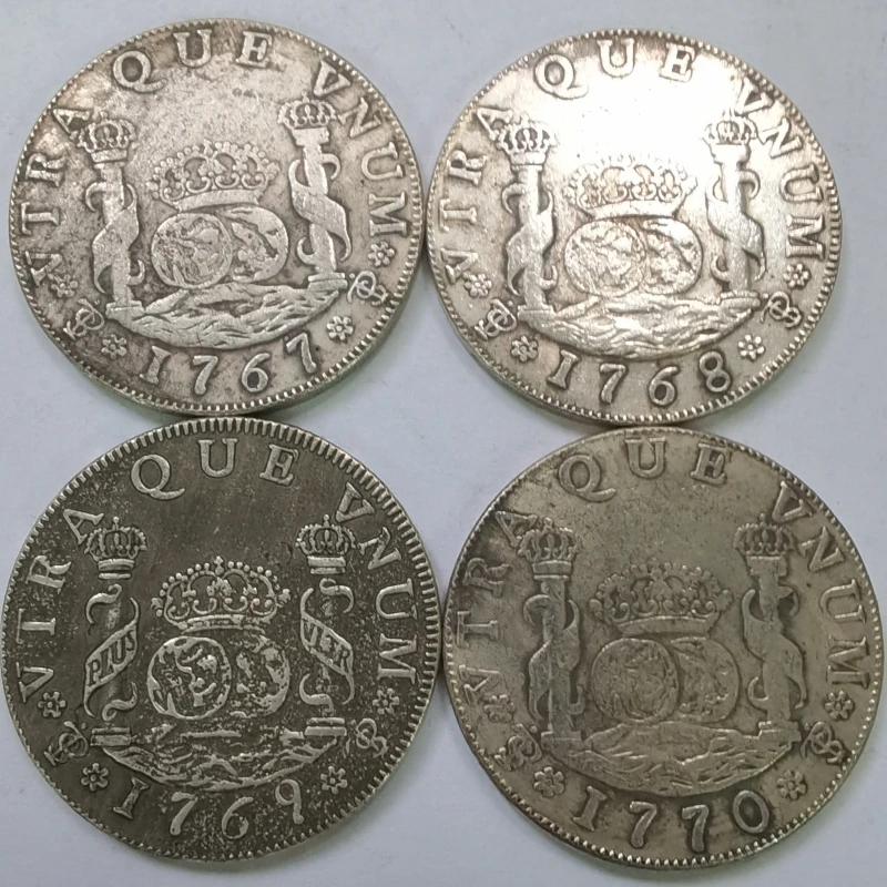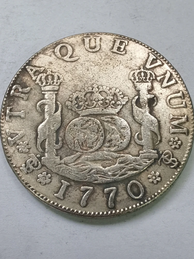 Step into history with this beautifully crafted replica of the Bolivia 4 Reales coin from the era of Charles III. Made of copper, these coins exude a rich, vintage charm that transports you to the 18th century. Each coin features detailed engravings, including a regal coat of arms supported by heraldic lions, topped with an ornate royal crown. The design is complemented by fine ridges along the edge and a slightly worn, aged appearance that emphasizes their nostalgic, old-world aesthetic. Available in four different years—1767, 1768, 1769, and 1770—you can choose the date that resonates most with your collection. These collectible pieces are perfect for vintage decor, display, or as a memorable gift for history enthusiasts.
