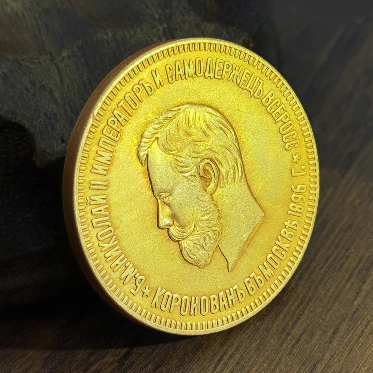 Immerse yourself in history with this beautifully crafted vintage-style copper coin. Measuring 34mm in diameter, it features a detailed relief of a bearded man's profile facing left, capturing intricate facial features, hair, and beard. The craftsmanship combines rustic charm with elegant detailing, evoking a nostalgic, European aesthetic rooted in patriotism. The coin’s border of tiny vertical lines and Cyrillic inscriptions referencing 1896 enhances its antique appeal. Available in three distinctive finishes—antique golden, silvery, and polished copper—each offers a unique timeless look. Made from durable, high-quality copper free of chemical treatments, this piece is perfect as a decorative accent, collectible item, or a tribute to heritage and craftsmanship. Bring a sense of history into your collection today and enjoy the nostalgic beauty of this handcrafted coin.