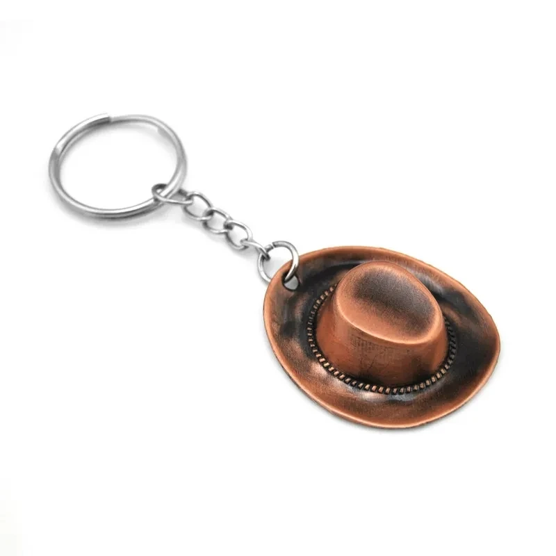 Imagine carrying a piece of Western charm wherever you go with this vintage-inspired keychain. Featuring a detailed miniature cowboy hat pendant, it showcases a classic shape with a wide brim and a pinched crown. Crafted from zinc alloy, the hat has a smooth, metallic surface with an antique finish and subtle textured details mimicking leather or fabric. Available in three rich tones—antique copper, silver, and gold—each exudes a nostalgic, masculine appeal. Its compact size makes it perfect as a bag charm or car keychain, adding personality to your everyday accessories. The durable O-shaped buckle ensures easy attachment to various items, making this keychain a versatile and stylish addition. Durable and safe, it's designed for those who appreciate timeless Western motifs with a vintage feel.