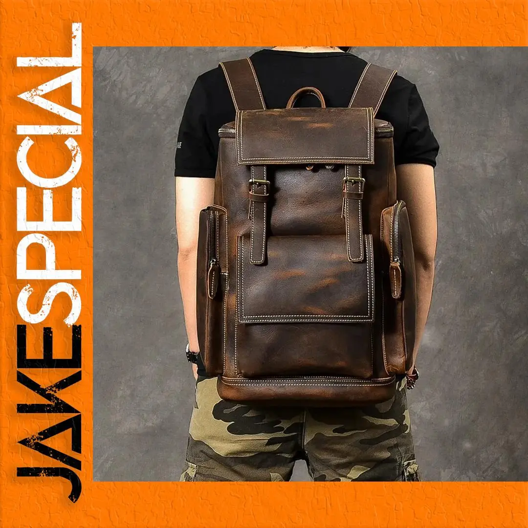 This Vintage Crazy Horse Leather Backpack Awaits You