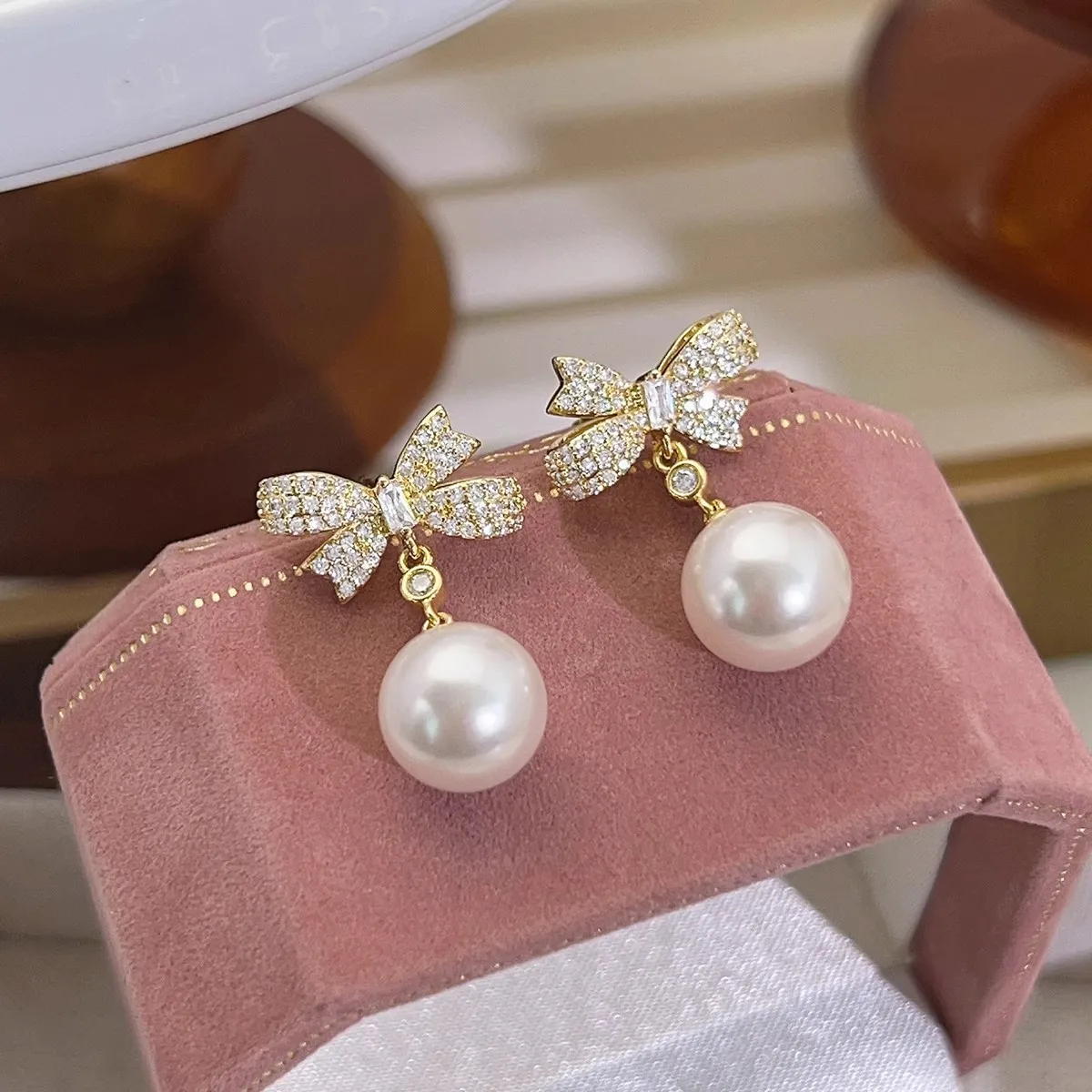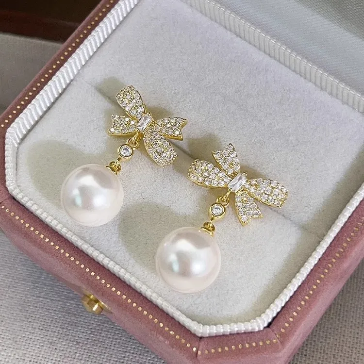 This Elegant Crystal Bowknot Imitation Pearl Earrings