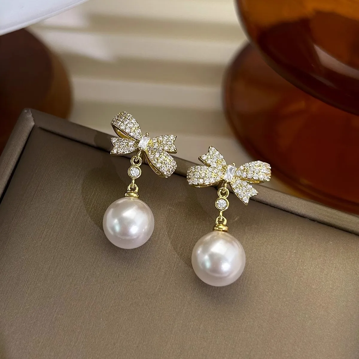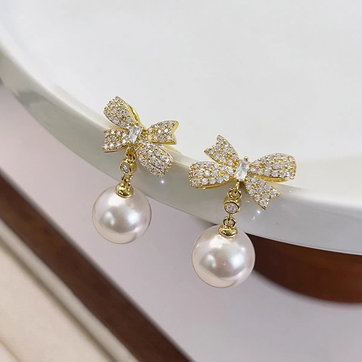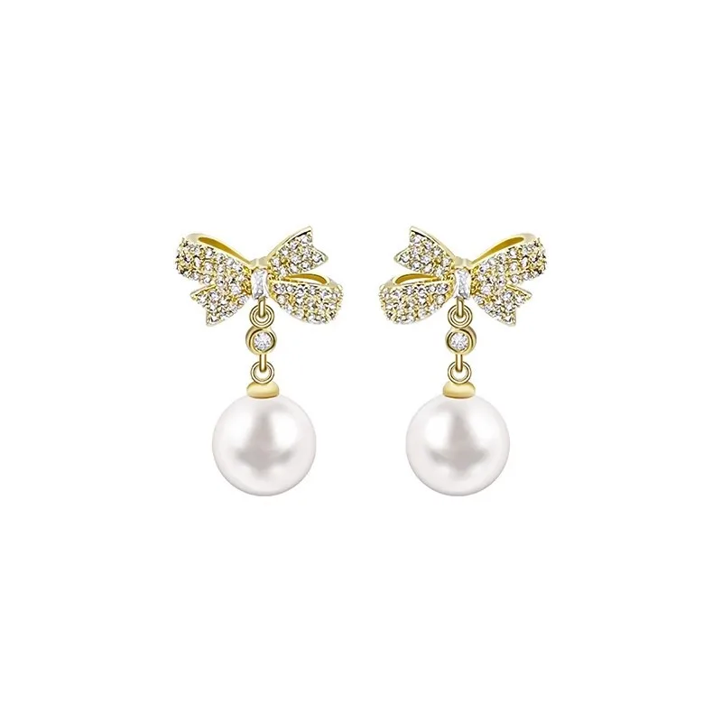 Imagine adding a touch of vintage elegance to your look with these exquisite drop earrings. Crafted from copper with a beautiful KC Golden finish, they feature a delicate bowknot encrusted with tiny, sparkling clear crystals that catch the light perfectly. Dangling from the bow is a lustrous white imitation pearl pendant, smoothly polished to enhance its classic appeal. The design balances timeless sophistication with a modern, fashion-forward touch, making these earrings ideal for parties, special occasions, or elevating everyday style. Their lightweight and refined appearance ensure comfort and an eye-catching presence that highlights your unique taste. Enhance your jewelry collection with this beautiful piece and enjoy a versatile accessory that embodies graceful charm.