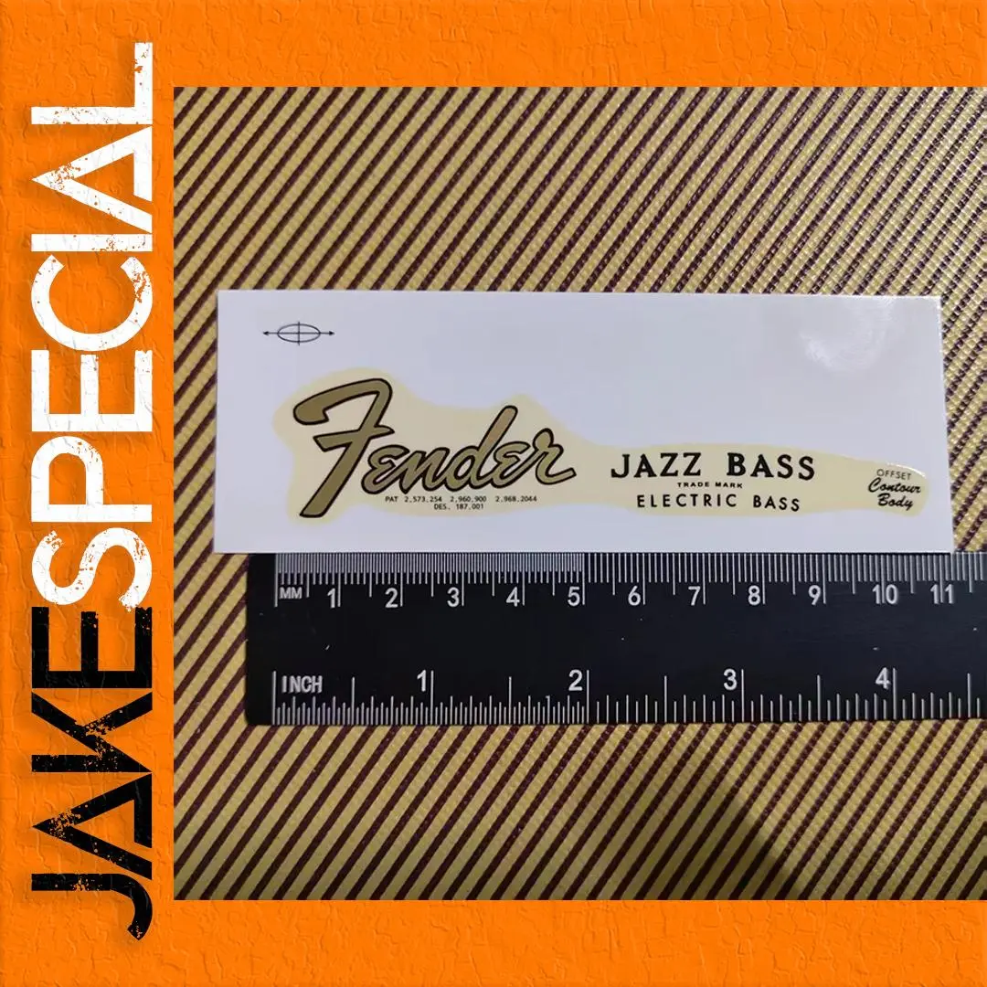 Enhance your electric guitar with this set of 2 vintage custom decals specifically designed for necks and headstocks. Each decal features a light cream background with golden lettering spelling “Fender” and “JAZZ BASS,” adding a classic touch to your instrument. The decals are crafted from durable plastic, ensuring they remain intact through use. Application is simple; just soak in water for around 15 seconds for easy placement on a smooth surface. These decals embody a vintage aesthetic, perfect for restoring or personalizing your guitar while maintaining an authentic look.