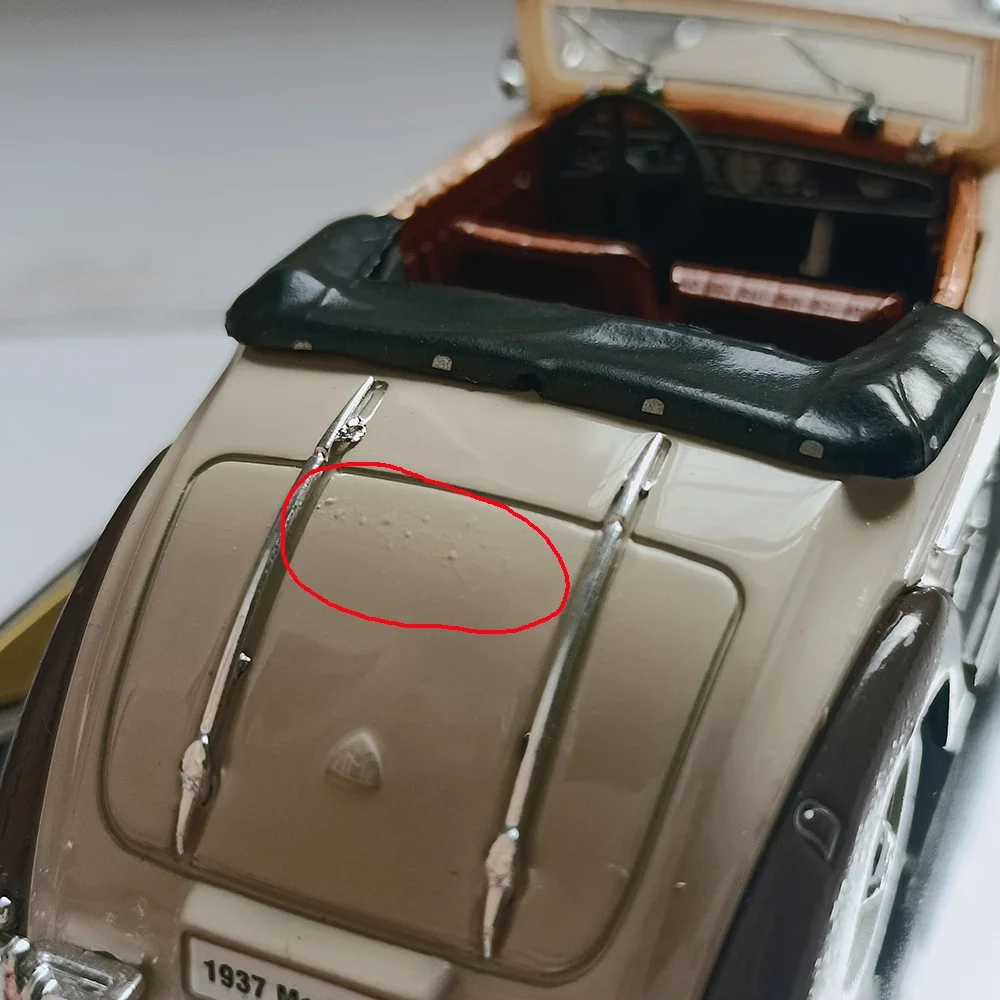 - The surface exhibits a large-scale paint rash defect, providing a vintage, distressed look that adds character, authenticity, and a unique aesthetic to your collection.