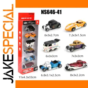 Experience a captivating collection of six die-cast metal cars at a 1:64 scale, showcasing retro and modified styles that appeal to adult collectors and enthusiasts. Each non-pullback sliding model is crafted from durable metal, measuring approximately 6 to 7.2 cm in length, 3 cm in width, and 1.5 to 3 cm in height. With vibrant colors labeled “san 041” and “0041,” these cars feature sleek, nostalgic designs, including a compact vintage coupe, streamlined racing car, and playful retro van. Suitable for ages 4 and above, these high-quality models are perfect for display and add a stylish touch to any collector’s setup.