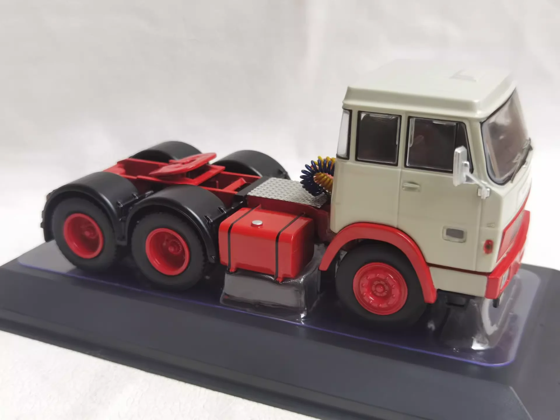 This diecast model truck is a masterfully crafted 1:43 scale replica that blends nostalgia with aesthetic appeal. The classic design boasts a captivating two-tone color scheme, with a light cream cab and a striking red chassis, harmoniously complemented by oversized wheels. The intricately detailed elements, like the brand name “HENSCHEL” elegantly displayed on the grille, highlight the craftsmanship. Intended as a collectible, this model is perfect for display, study decoration, or as a thoughtful gift. Although it has a slight paint defect on the roof, it adds to the uniqueness of this exceptional piece, tailored for adult collectors.