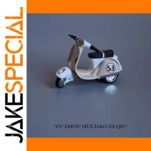 Discover the charming elegance of this vintage-inspired diecast motorcycle model by HYINUO, perfect for collectors and enthusiasts. Its size, approximately 10 x 4 x 6.5 cm, makes it an ideal display piece to add a nostalgic touch to your space. Crafted from durable plastic, this static replica captures the essence of classic scooters with smooth, curved lines and a minimalistic design. The creamy off-white hue paired with bold red, blue, and black accents creates a refined aesthetic that is both eye-catching and tasteful. Its small, integrated headlight, black wheels with silver hubcaps, and sleek black seat evoke timeless style. This model promises to bring a nostalgic, vintage vibe into your collection or home decor.