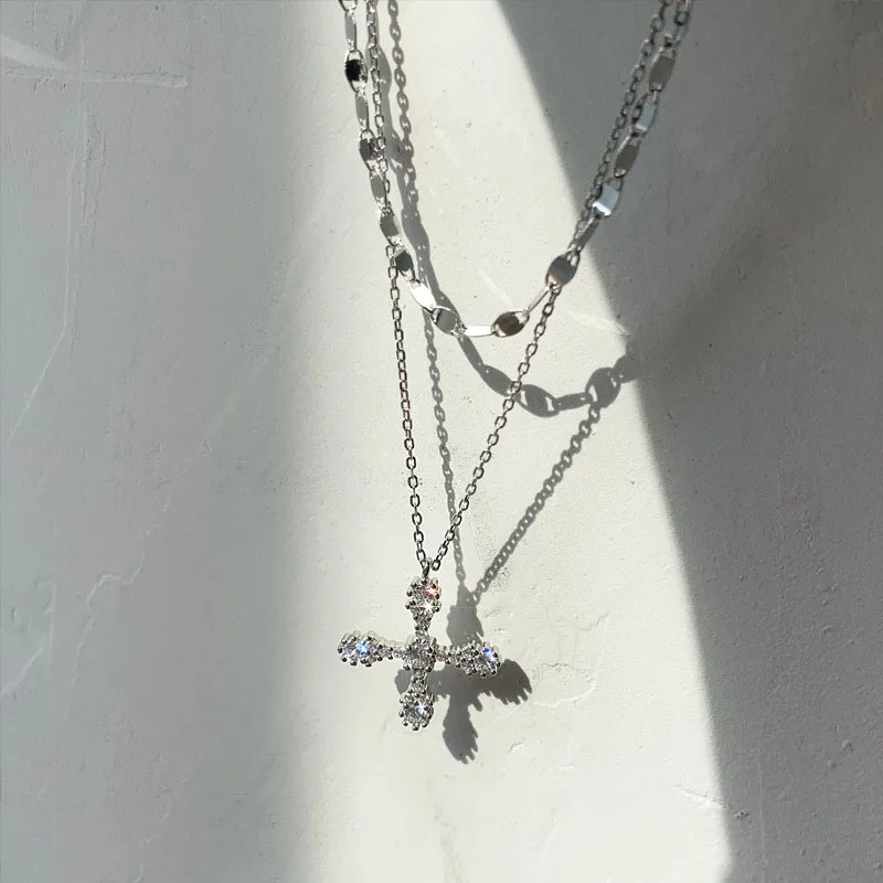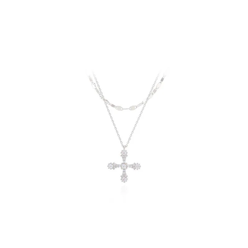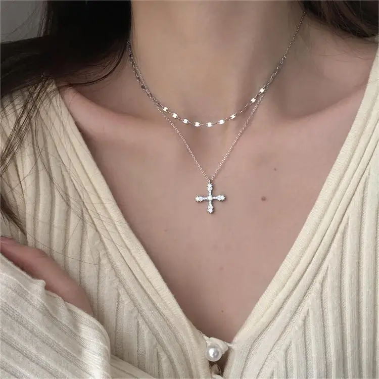 Elevate your style with this vintage-inspired double-layer cross pendant necklace, measuring 1-5cm and crafted from zinc alloy with sparkling artificial gemstones and semi-precious stones. The sleek, silver-toned link chain combines punk and fashion elements, perfect for adding a touch of glamour to any occasion, from anniversaries to everyday wear. Available in multiple metal color options, this necklace exudes a refined yet edgy aesthetic, making it an ideal accessory for women and girls who want to showcase their unique personality and sophisticated taste. Experience the luminous sparkle and elegant design that effortlessly enhances your outfit and personal style.