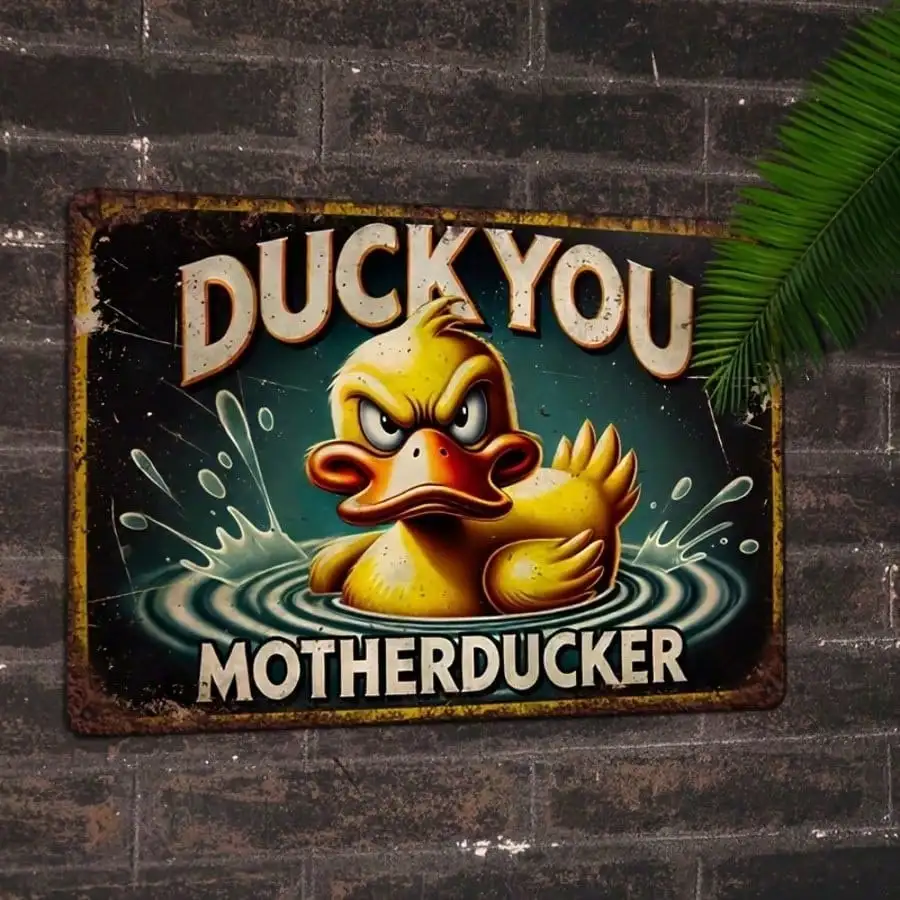 Imagine adding a touch of humor and retro charm to your space with this vintage-style aluminum wall sign. Designed with bold graphics, it showcases a cartoonish yellow rubber duck with an angry expression splashing into water ripples, bringing energy and fun to any wall. Its weathered finish and slightly worn edges evoke a nostalgic, rustic vibe, perfect for decorating a man cave, garage, bar, or outdoor area. The size of 20cm by 30cm ensures it’s a striking yet unobtrusive piece. Crafted from durable aluminum with predrilled holes, it’s easy to hang indoors or outdoors. Elevate your décor and create a welcoming, playful atmosphere with this unique and humorous sign.