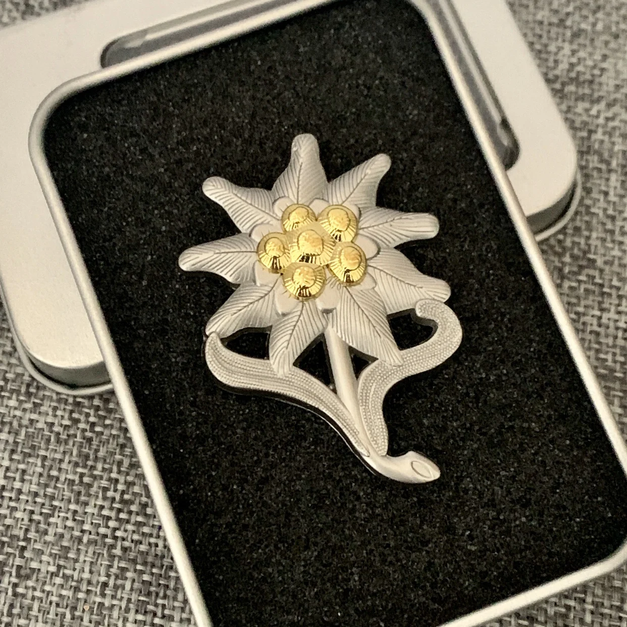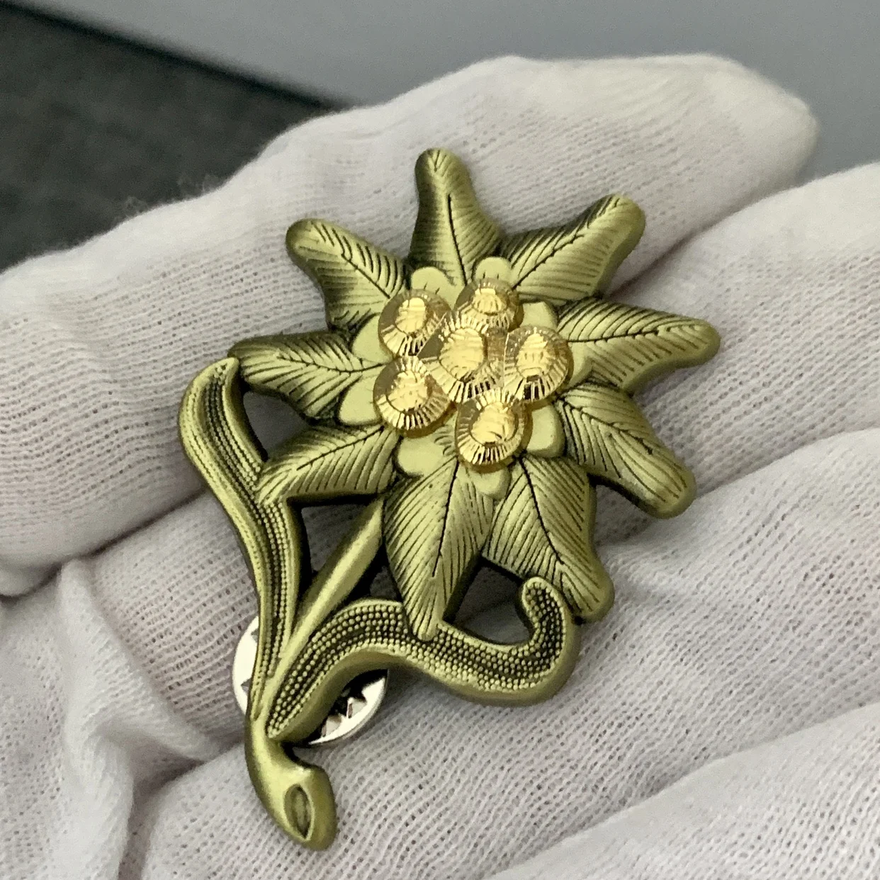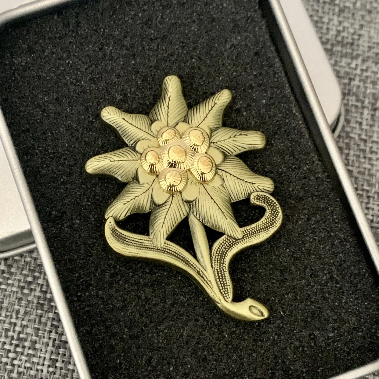 Don't miss the opportunity to own this beautifully crafted vintage Edelweiss medal. Whether you're a dedicated collector or seeking a unique costume accessory, this badge combines historical charm with artistic detail. Its timeless European style makes it a versatile piece to elevate any wardrobe or display. Its exquisite craftsmanship and customizable options ensure it stands out as a treasured addition. Add a touch of vintage elegance and craftsmanship to your collection today—this badge will surely become a conversation starter and a cherished item for years to come.