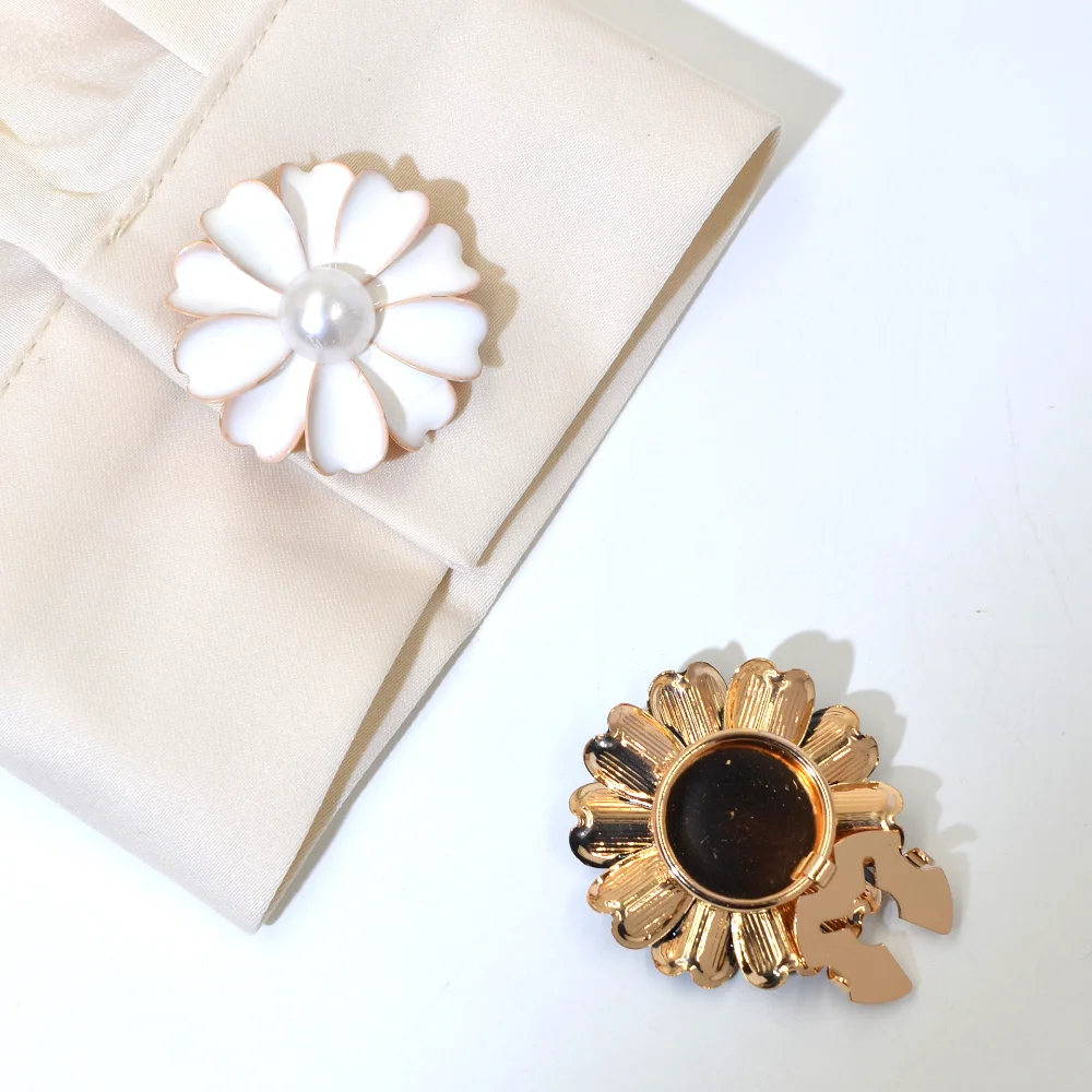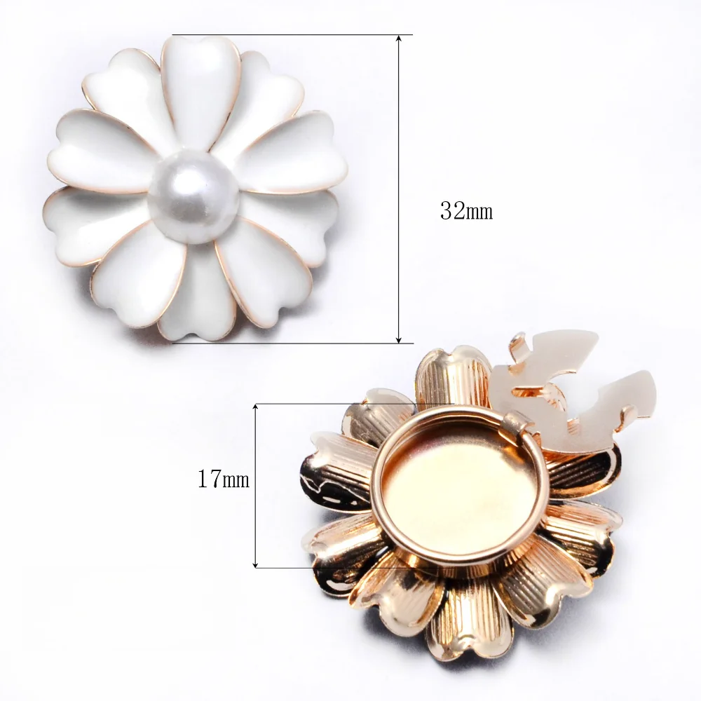 Transform your wardrobe with these Vintage Enamel Button Covers featuring a charming two-tone color scheme in White, Black, and Pink. Crafted from durable alloy, each button cover showcases a stylish floral design with rounded petals and a glossy pearl centerpiece, enhanced by a shiny metallic finish. Suitable for both unisex wear, they seamlessly fit jackets, backpacks, hats, and DIY clothing projects. Embrace a mix of retro aesthetics infused with punk, military, and trendy vibes. With size specifications subject to a slight deviation of 1-3mm, these button covers are the perfect accessory for fashion enthusiasts looking to add unique flair to their outfits.