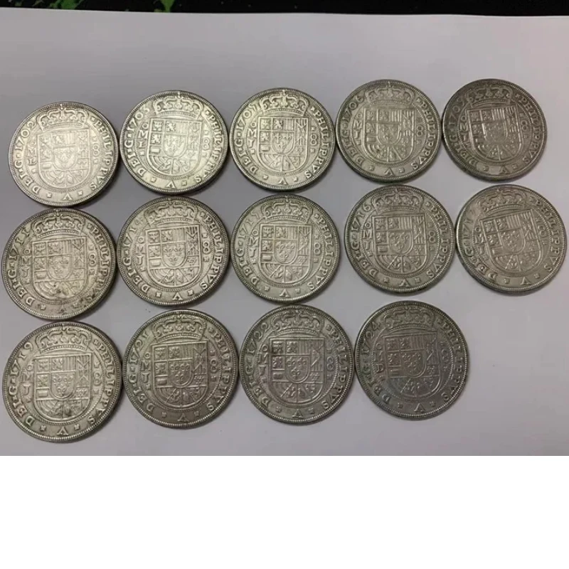 Enhance your collection with this set of 15 antique European-style replica coins, crafted from metal using casting techniques to evoke the charm of 19th-century currency. Featuring a dull silver-gray finish, each coin displays a central heraldic emblem with intricate quadrants showcasing castles, lions, and heraldic symbols, surrounded by faint inscriptions resembling old European script. The slightly raised outer rim is detailed with small notches or bead patterns, adding an authentic textured border. Designed as patriotic, vintage-inspired pieces, these coins exude aged elegance and historic appeal, perfect for collectors passionate about antique coinage and European heritage themes.