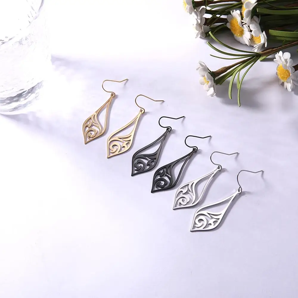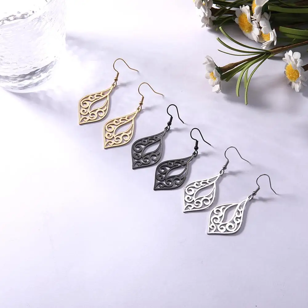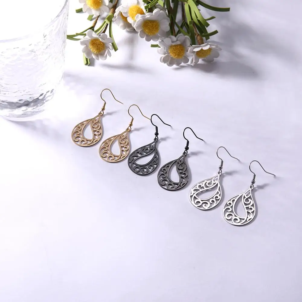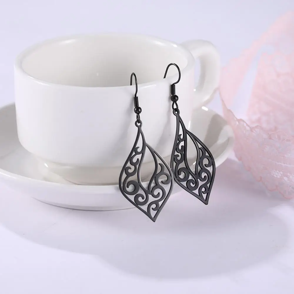 Experience timeless beauty with this pair of vintage-inspired drop earrings, crafted from high-quality stainless steel. Their intricate swirling filigree design evokes a delicate floral motif, adding a touch of elegance to any outfit. Available in a variety of colors—black, gold, and steel—these earrings are perfect for special occasions or daily sophistication. The polished finish reflects light beautifully, enhancing their luxurious appeal. Designed for comfort and durability, they resist tarnish, oxidation, and fading, ensuring lasting shine. Whether worn to a wedding, a romantic date, or a festive party, these earrings promise to elevate your style while offering hypoallergenic comfort. Imagine yourself exuding grace and confidence whenever you wear them.