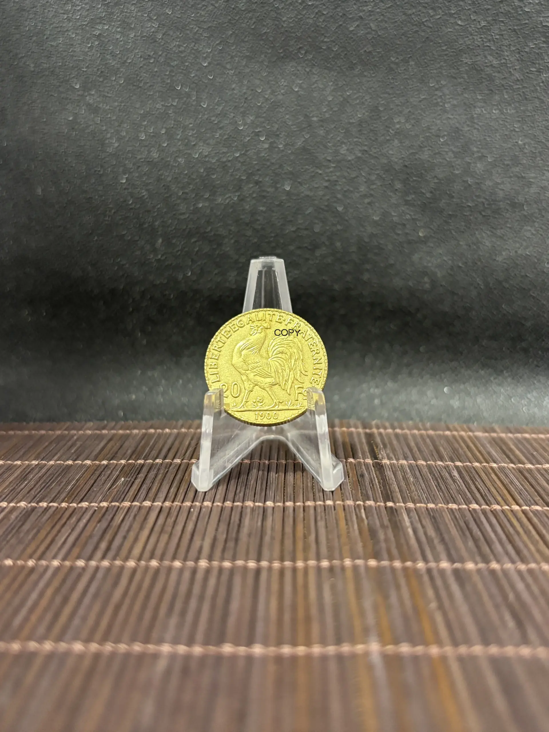 - Authentic design inspired by French 20 Francs coins from 1899 to 1914, including a detailed profile of a historic figure with intricate hair and facial features for realism.