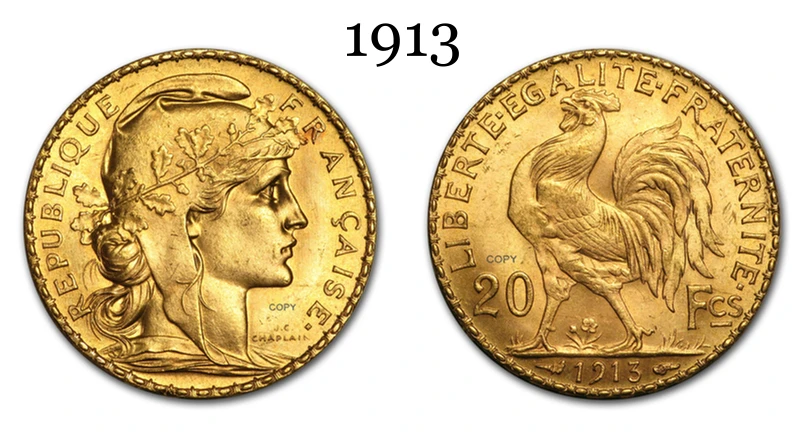 Vintage French Gold Marianne 1913 Replica