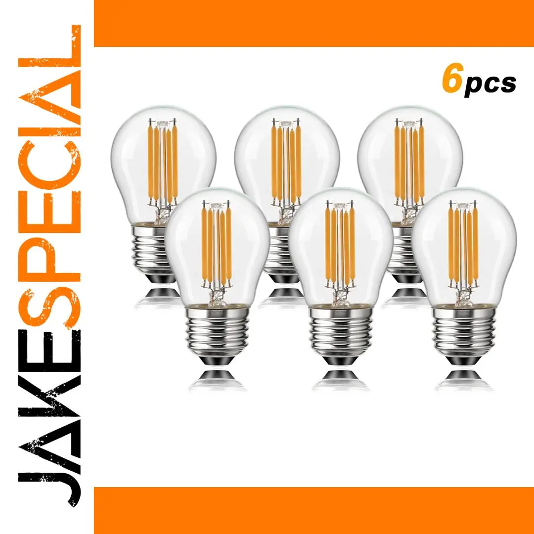 - 6-pack set of vintage G45 globe LED bulbs with clear glass housing and Edison-style filament design, bringing retro charm to your indoor spaces effortlessly.