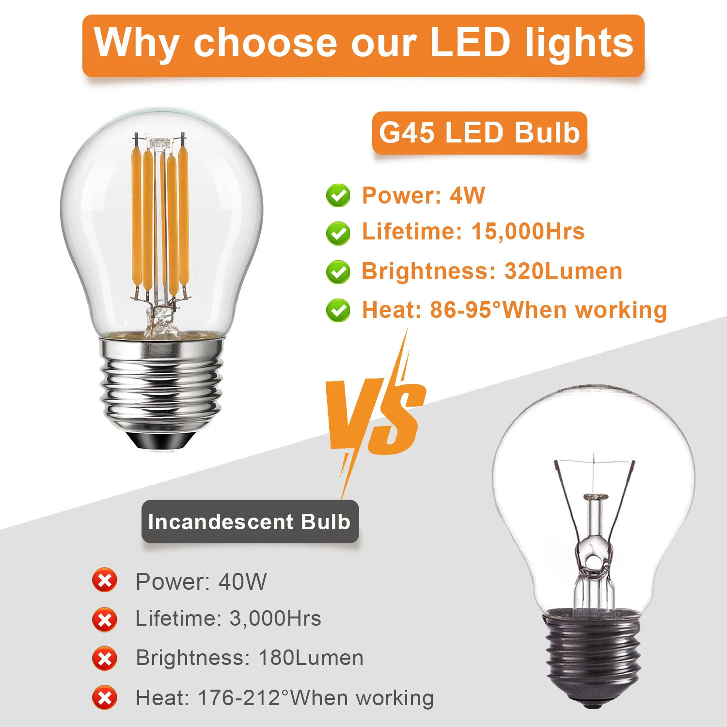 Keys features of the vintage G45 LED bulbs