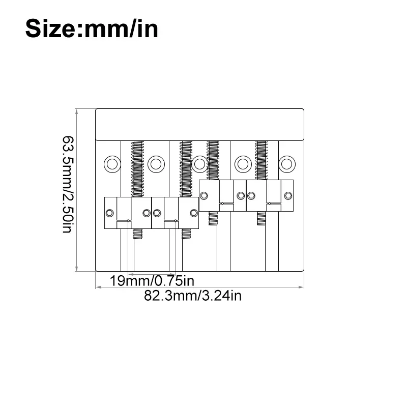 - Measures 82.3 x 63.5 mm with a 19 mm string spacing for perfect fit on 4-string bass guitars, providing reliable performance and easy installation. Compatible with various bass models needing fixed bridges.