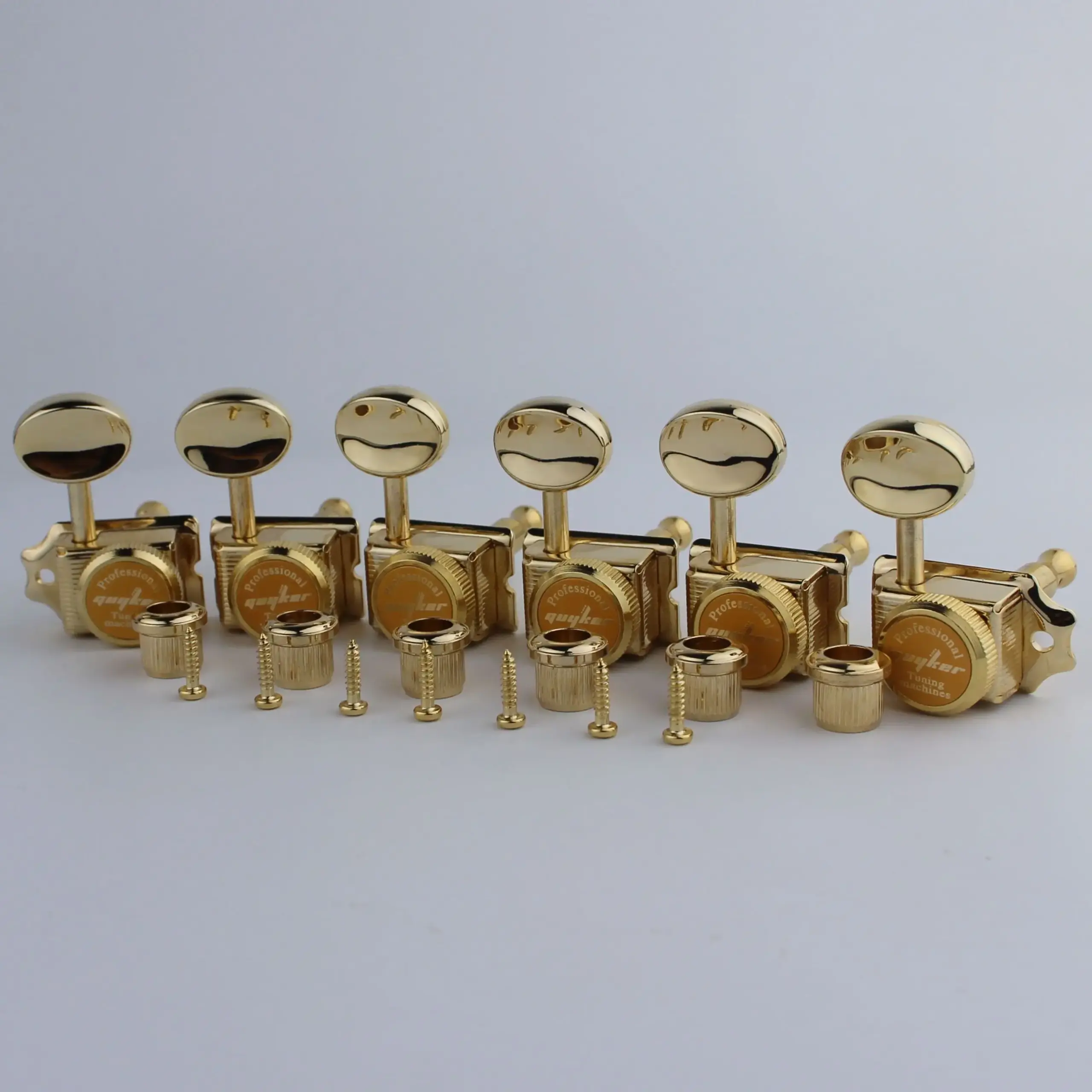 Enhance your instrument’s aesthetic and tuning stability with these high-quality vintage gold lock string tuners. Easy to install and crafted for durability, they will transform your guitar's look while ensuring reliable performance. Perfect for guitar enthusiasts who value style and function equally, these tuners will make tuning an enjoyable part of your playing experience. Imagine the confidence you'll feel, knowing your guitar stays in tune, looks exceptional, and reflects your personal style. Don’t miss the opportunity to elevate your guitar both visually and functionally—order now and enjoy the perfect blend of vintage charm and modern reliability!