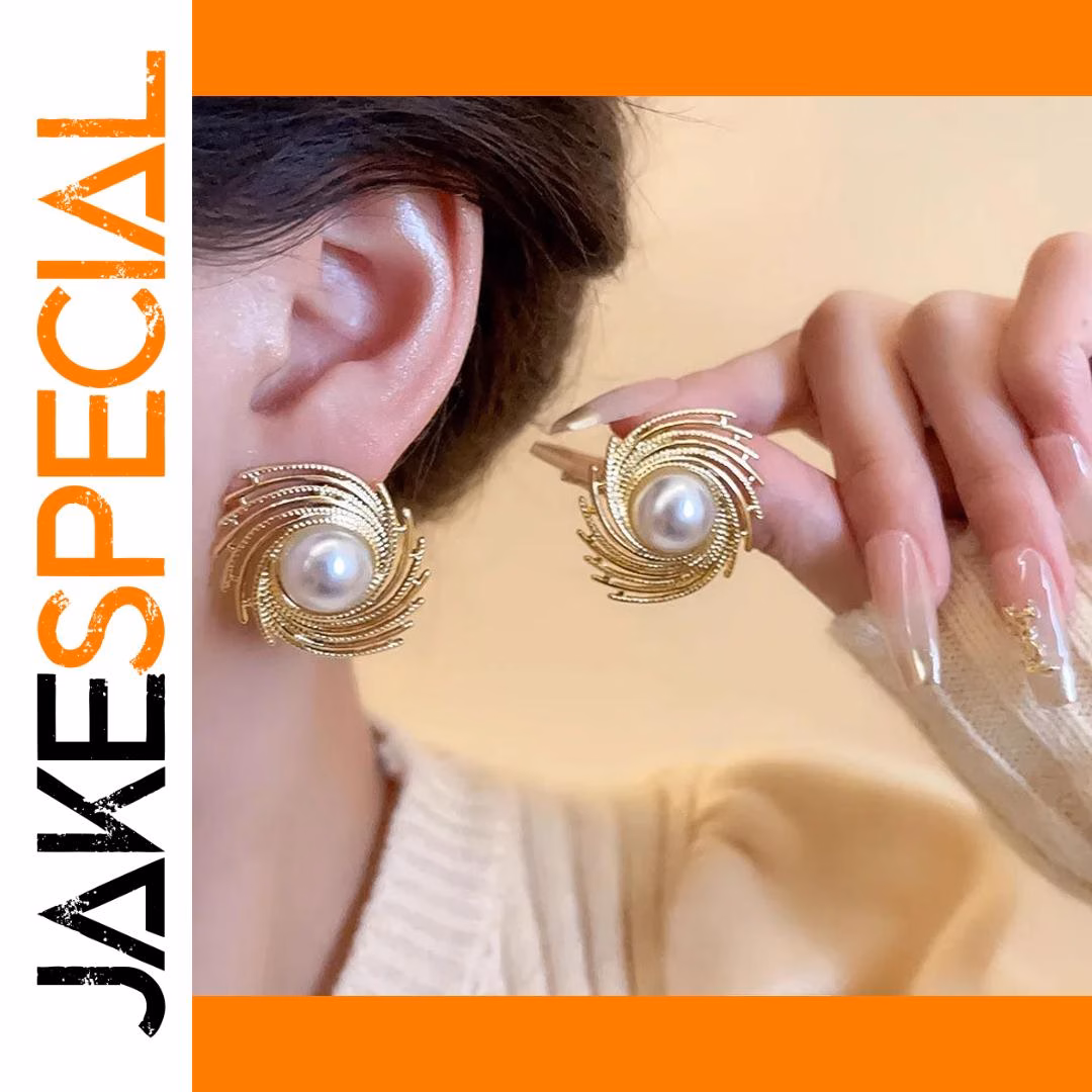Immerse yourself in timeless elegance with this pair of women's earrings, featuring a sophisticated vintage design. Each earring showcases a luminous, simulated pearl at its center, complemented by a geometric, swirling pattern crafted from zinc alloy with a warm golden finish. The square shape and heart-shaped accents add a touch of charm and refinement, making these earrings perfect for formal occasions or adding a luxurious touch to everyday outfits. Designed with comfort and security in mind, they feature push-back closures that keep them firmly in place. Their versatile, elegant style makes them a must-have accessory for women who appreciate both classic beauty and contemporary fashion, allowing you to express your unique style effortlessly.
