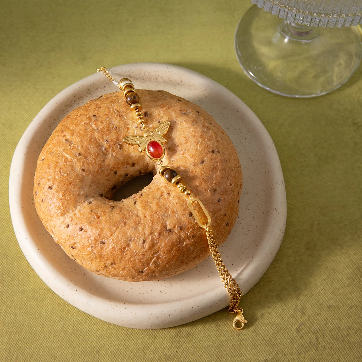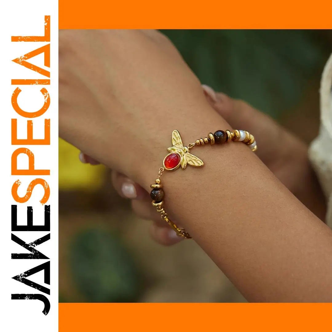- The charming gold-toned bee charm, etched with wings and body details, adds a nature-inspired vintage aesthetic.
