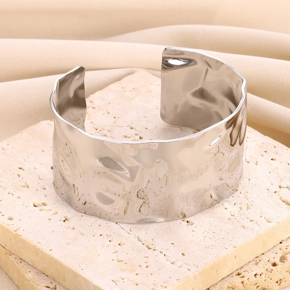 - Wide, flat cuff measuring approximately 58-60mm in diameter, with a slightly irregular shape for unique visual appeal.