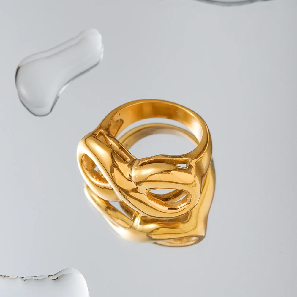 Discover the timeless beauty of this vintage gold stainless steel ring, designed to elevate your style effortlessly. Crafted with durable PVD , it promises long-lasting color and resistance to fading, scratches, and water. Its modern geometric shape adds a touch of sophistication to any outfit, making it a versatile accessory for both casual and formal occasions. Whether you're celebrating a special event or adding a chic touch to your everyday look, this ring combines elegance with comfort. Its minimalist yet bold design is perfect for women seeking a distinctive accessory that reflects their unique style. Make this exquisite ring yours to enjoy a seamless blend of fashion and durability, trusted by those who appreciate quality jewelry.