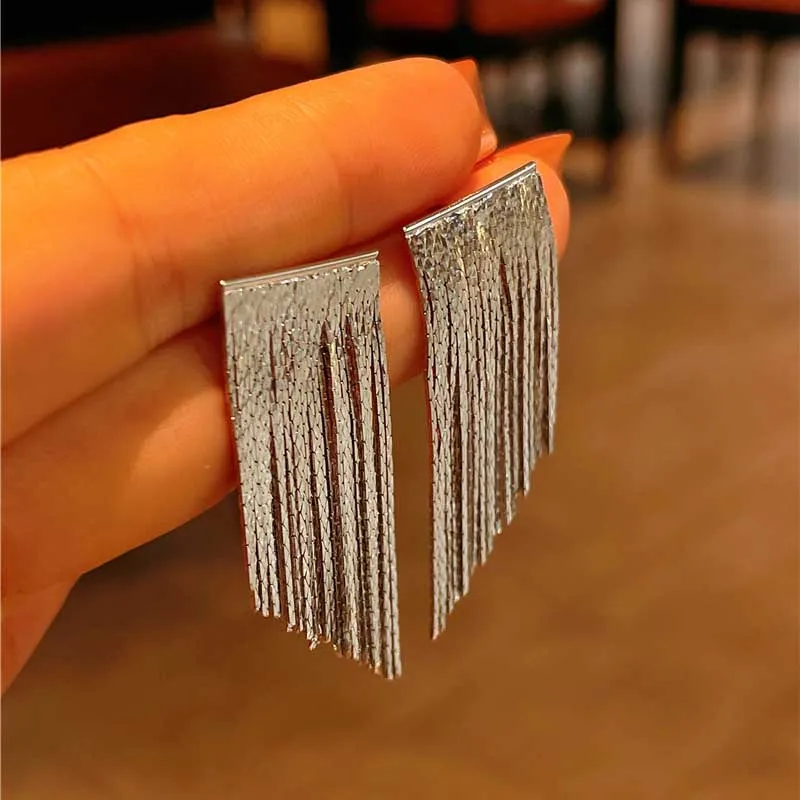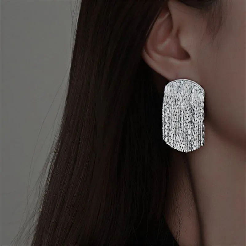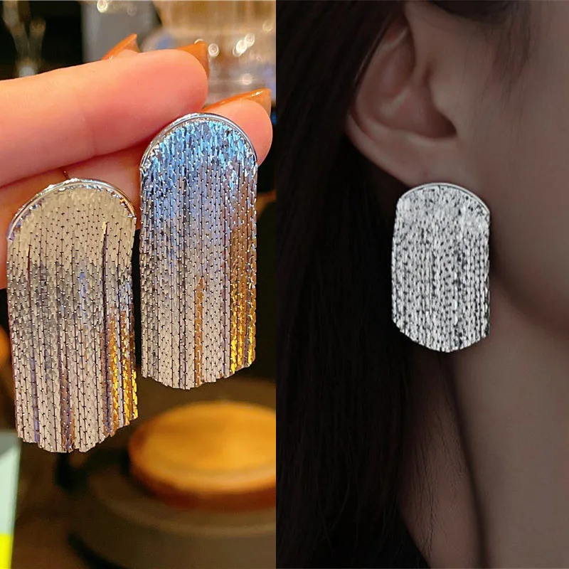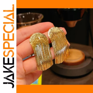 Enhance your ensemble with these vintage-style drop earrings, featuring a striking geometric design and a luxurious gold-colored copper finish. The elongated, rounded rectangular shape is adorned with a textured lower tassel section of shiny metallic strips, creating a layered, tassel-like effect, complemented by a smooth, domed top. Available in seven metal color options numbered from 1 to 7, these earrings are lightweight yet bold, perfect for making a statement or gifting. Designed specifically for women, they incorporate a subtle leaf motif with crystal accents, merging vintage charm with modern elegance, ideal for special occasions or elevating everyday style.