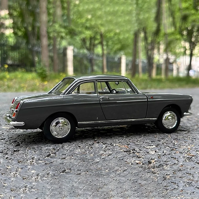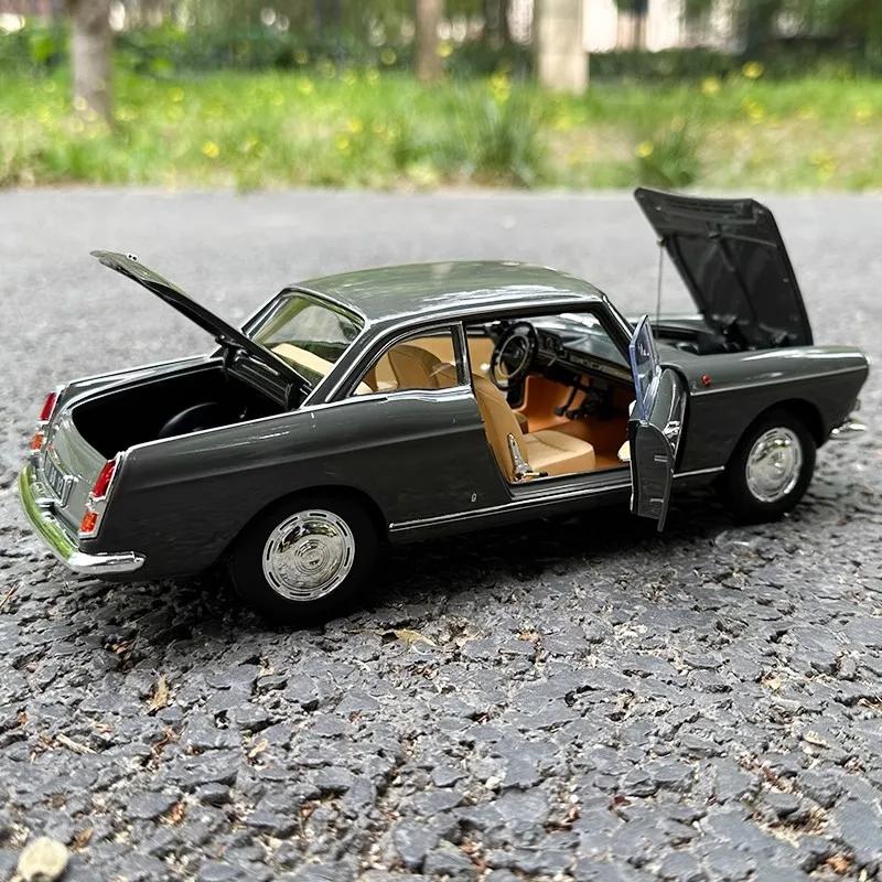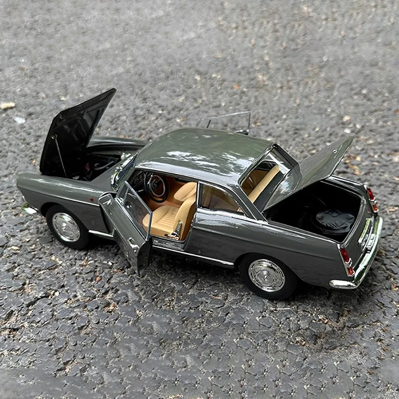 Step into the world of classic automobilia with this exquisitely detailed 1:18 scale vintage car model. Crafted from alloy, rubber, and plastic, it measures 24 cm long, 10 cm wide, and 7.8 cm high, offering an impressive display piece. Its deep, dark green glossy finish perfectly captures the vintage aesthetic of the 1960s. The meticulously designed body features flowing lines, a slightly curved roofline, and realistic chrome accents around the headlights, grille, bumpers, door handles, and side mirrors. With functional doors, front and rear covers, and steerable front wheels linked to a visible steering wheel, the model provides an authentic visual experience. It's an ideal collectible for enthusiasts who appreciate high-quality craftsmanship and vintage style.