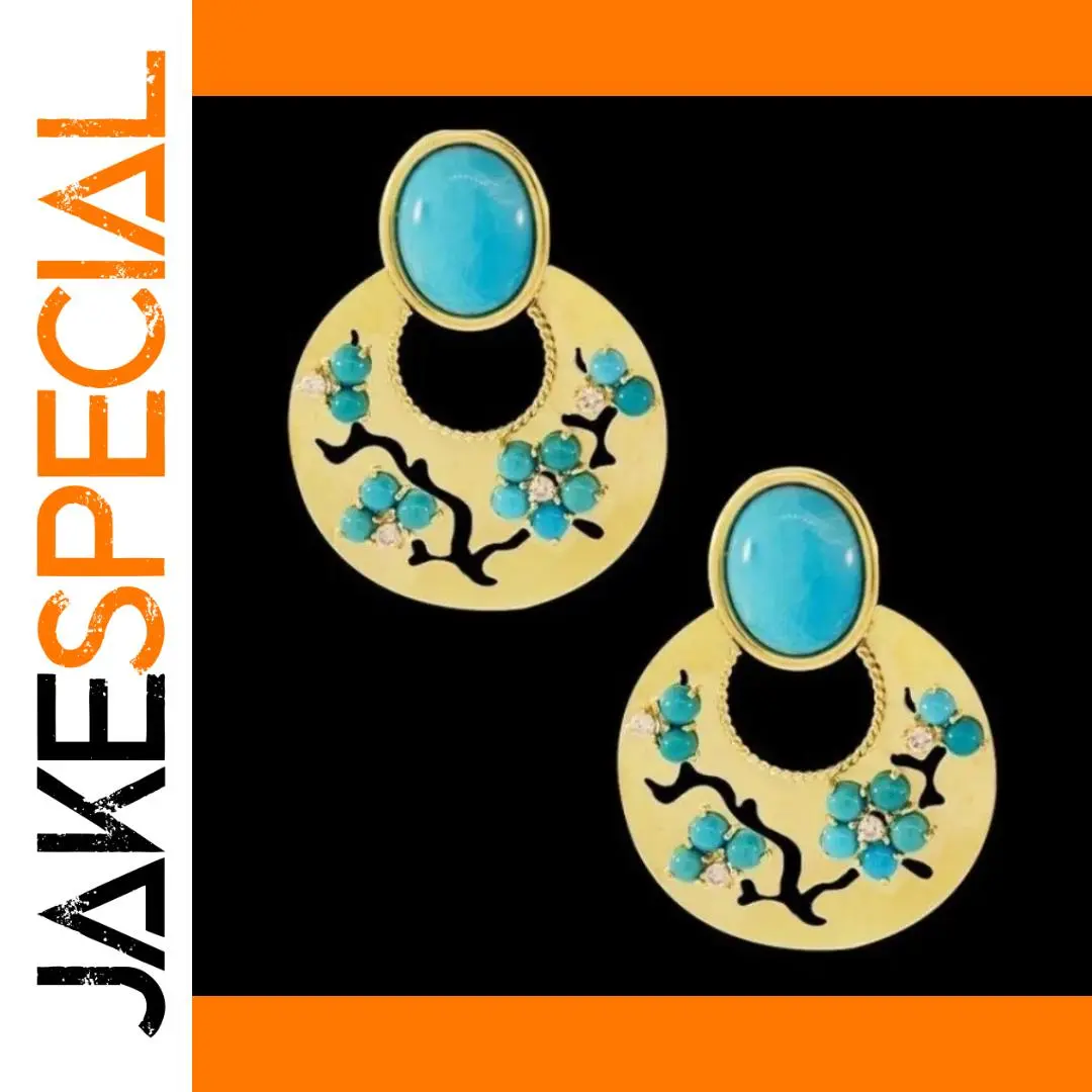 Step into elegance and artistry with these vintage-style drop earrings, perfect for enhancing any outfit. Crafted from zinc alloy, they feature a striking green, polished oval stone set in a delicate bezel, radiating vibrant blue hues. Beneath, a beautifully engraved gold-colored metal disc showcases a stylized black vine or branch pattern, adding an artistic touch. Small turquoise beads are arranged in floral motifs around the disc, accented with sparkling crystal stones, delivering subtle sophistication. The detachable chain allows for playful movement, making these earrings ideal for both everyday wear and special occasions like weddings or parties. They blend timeless design with modern creativity, ensuring you shine at every event. Their versatile color options mean you can match them effortlessly with your wardrobe.