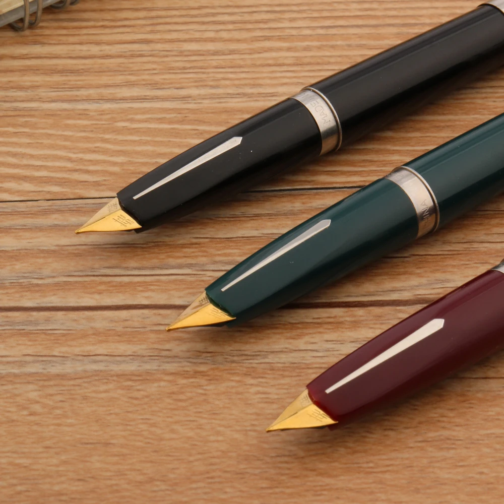 Experience the timeless elegance of this vintage HERO 240 stainless steel fountain pen. Crafted with a sleek, glossy metal body, it features three striking color options: deep green, classic black, and rich red or maroon. The design exudes retro charm, reminiscent of 1990s craftsmanship, with straight sides tapering gracefully toward the gold-colored nib. The silver-colored metallic band with engraved detailing enhances its sophisticated appeal. Its duckbill aircraft nib, produced in the 1990s, offers a unique writing experience, with a 0.5mm tip suitable for precise and smooth strokes. Made of durable Iraurita metal, this pen combines vintage aesthetics with high-quality performance. Perfect for collectors or aficionados seeking a classic, reliable writing instrument with personalized options.