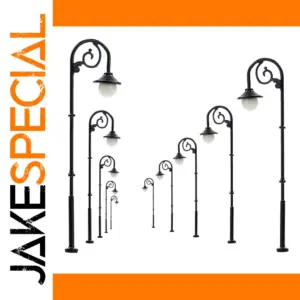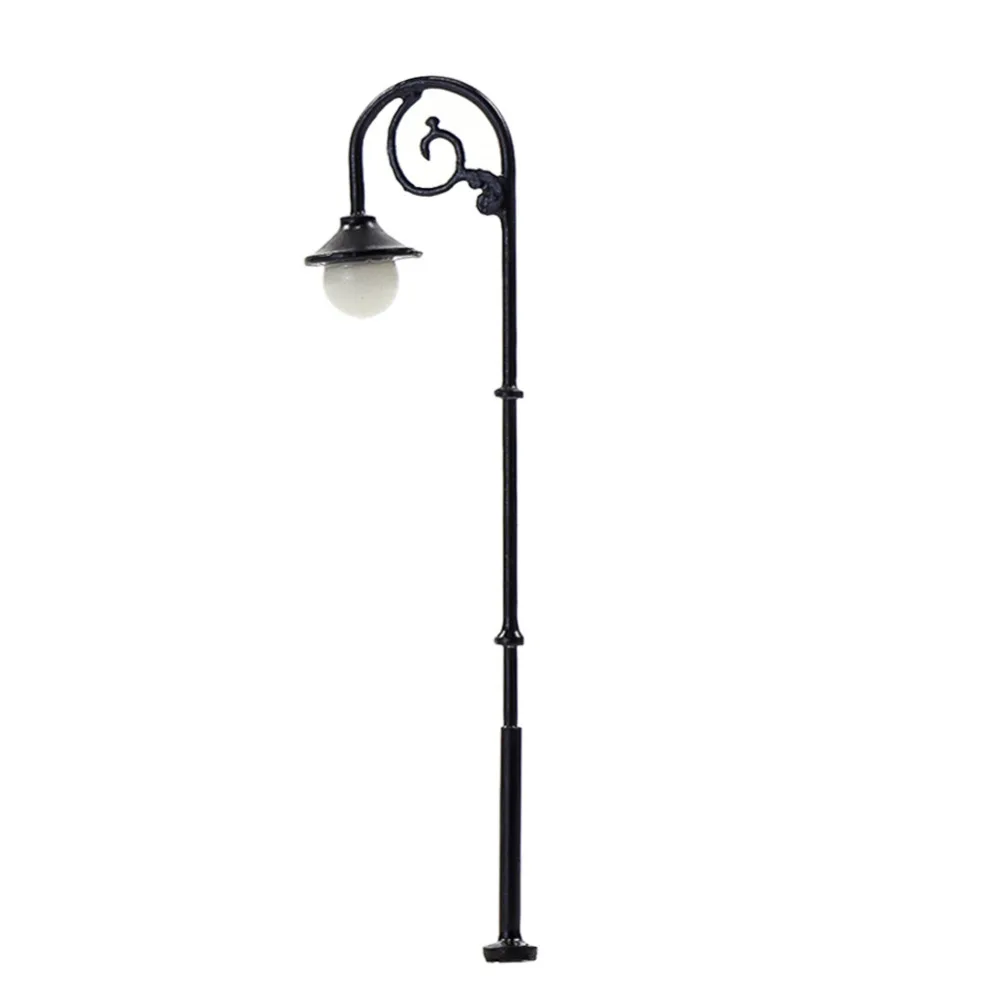 Step into a world of nostalgic charm with this set of ten vintage-inspired street lights from Evemodel, perfect for creating authentic outdoor scenes in your HO scale railway or diorama layout. Crafted with meticulous attention to detail, these lamps feature black, ornate metalwork with curved scroll arms supporting opaque white globes that mimic traditional glass lamps. The slender, copper-colored columns add a touch of warmth and elegance. Varying heights, with taller posts on the edges and shorter ones in the center, create a balanced, realistic street scene. These charming street lamps are ideal for enhancing your model environment with a classic, vintage atmosphere, capturing the timeless essence of old-fashioned street lighting.