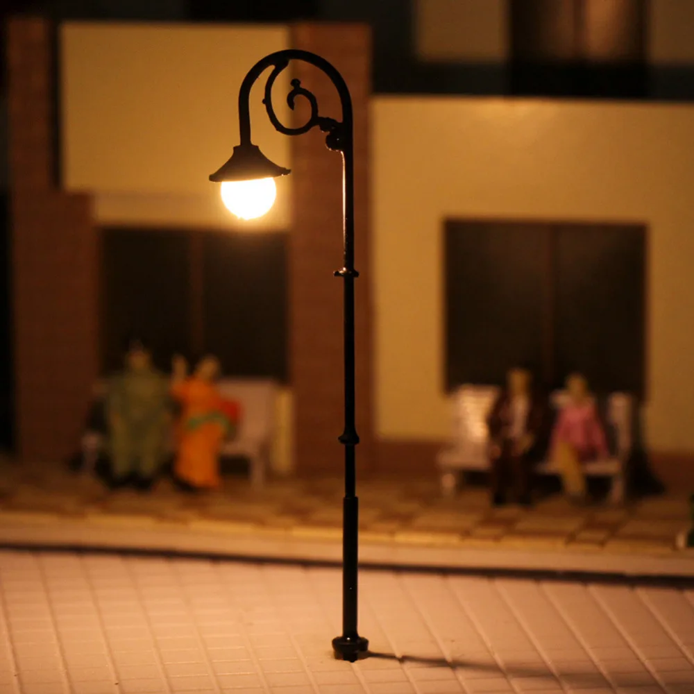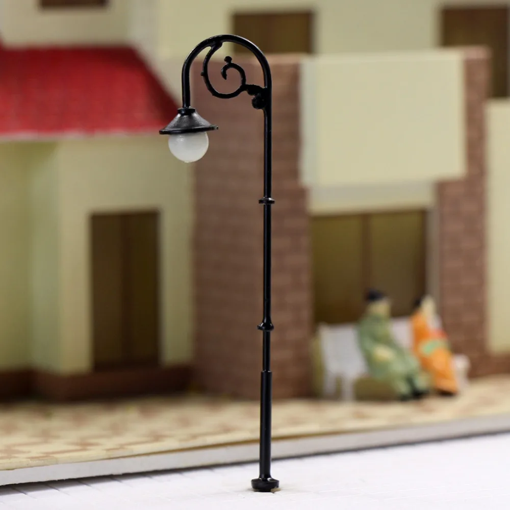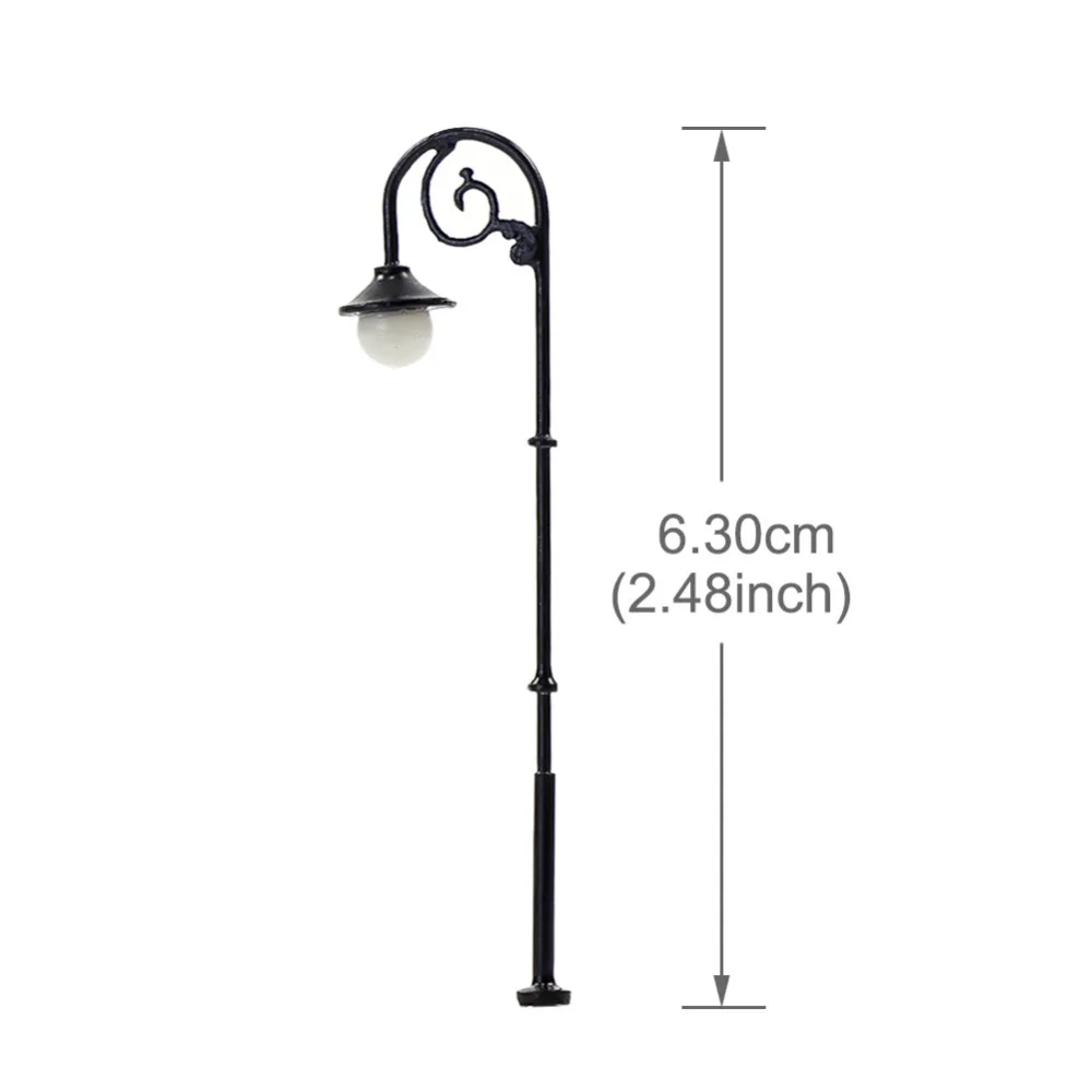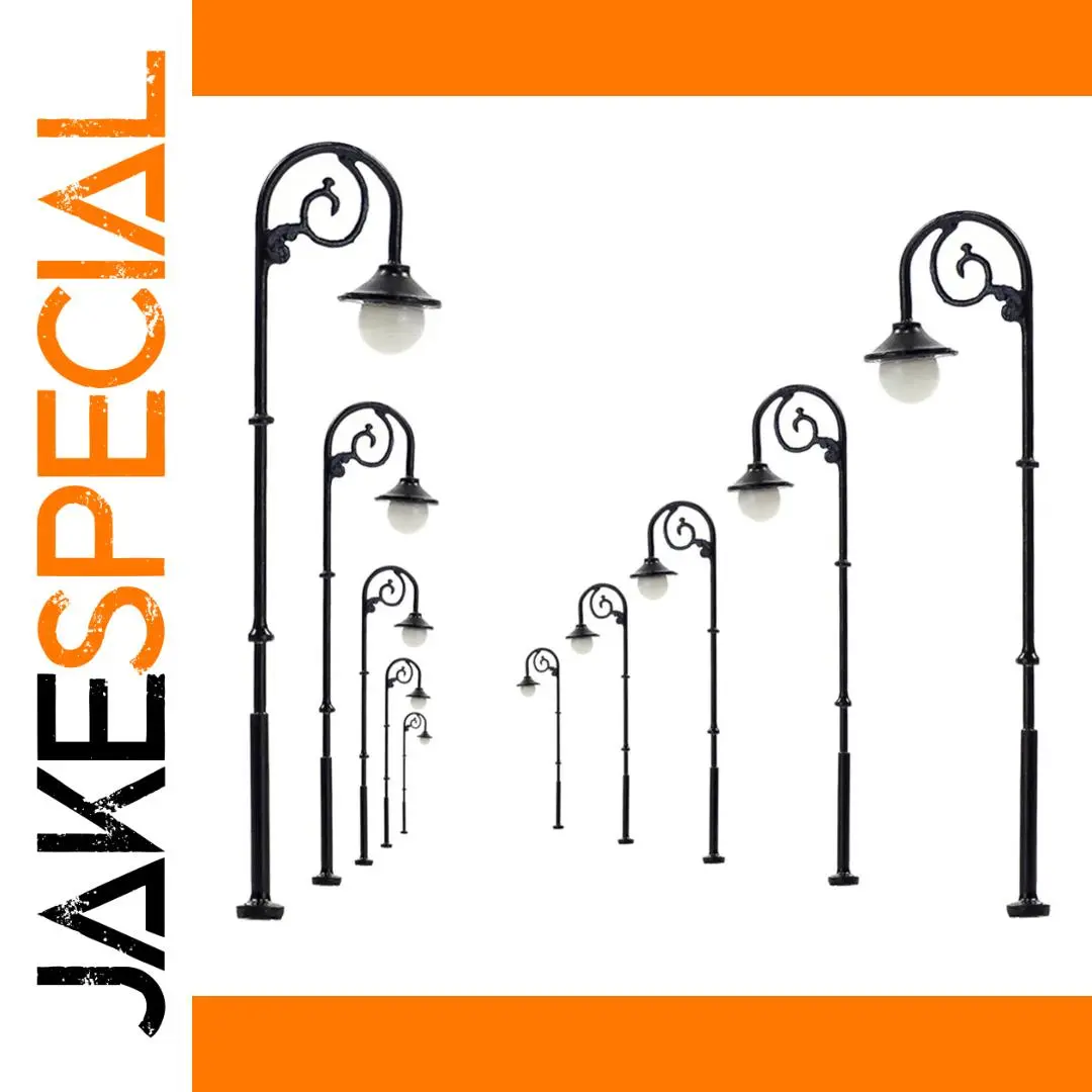 - Set of 10 HO scale street lamps, approximately 6.3 cm tall, suitable for miniature railway and building displays with 1:87 scale realism.