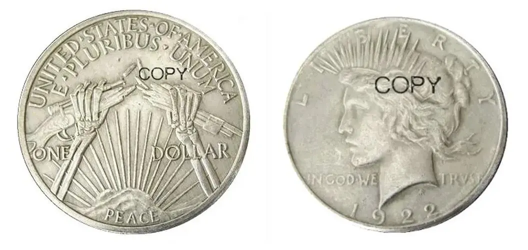Imagine holding a piece of history in your hands with this captivating coin replica inspired by the late 19th-century era. Its round shape and detailed relief engravings evoke vintage charm with a gritty, nostalgic appeal. The worn, antique finish accentuates the metal's rugged character, highlighting patriotic symbols intertwined with gothic and apocalyptic motifs. The obverse side features embossed text “UNITED STATES OF AMERICA” and “E PLURIBUS UNUM,” framing a central design of crossed skeletal hands clutching a rifle and broom, symbolizing resilience and rebellion. Below, “PEACE” is inscribed, with the denomination “ONE” on each side. This piece exudes boldness and historical allure, perfect for collectors and enthusiasts who appreciate retro aesthetics combined with a rebellious spirit.