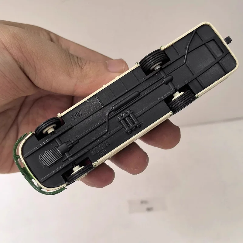 Step into the world of classic transportation with this precisely crafted 1:87 scale model of the IFA H 6 B bus. Made from durable plastic, this collectible figurine captures the iconic rounded, streamlined shape characteristic of mid-20th-century buses. Its off-white or cream body is accentuated with subtle black details, creating a timeless aesthetic. The long rows of dark-tinted windows and the gently curved windshield add realism and elegance. Fine panel lines and detailed door features enhance authenticity, while the flat roof with minimal contours suggests a functional design. Ideal for display or collection, this model evokes nostalgia and craftsmanship, making it a treasured piece for enthusiasts and collectors alike.