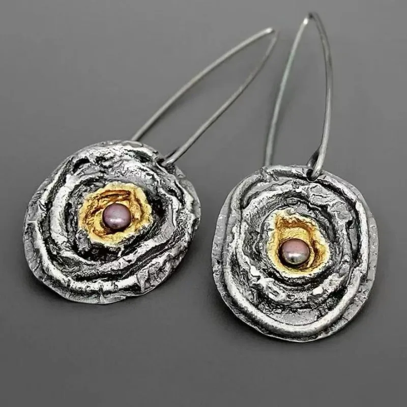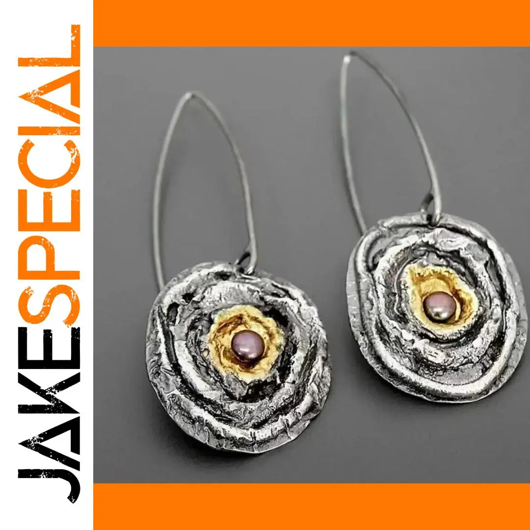Elevate your style with these vintage-inspired drop earrings, crafted from zinc alloy in silver or gold tones, featuring a distinctive geometric design. Inlaid with striking red stones, these earrings showcase a textured, layered surface that evokes an organic, handcrafted look. The small, round, pink-hued pearl-like bead set within a golden-colored inset adds a touch of elegance and contrast. Perfect for women and girls, they are ideal for parties, engagements, weddings, anniversaries, or daily wear, offering a versatile and artistic accessory that enhances your unique fashion statement with confidence and charm.