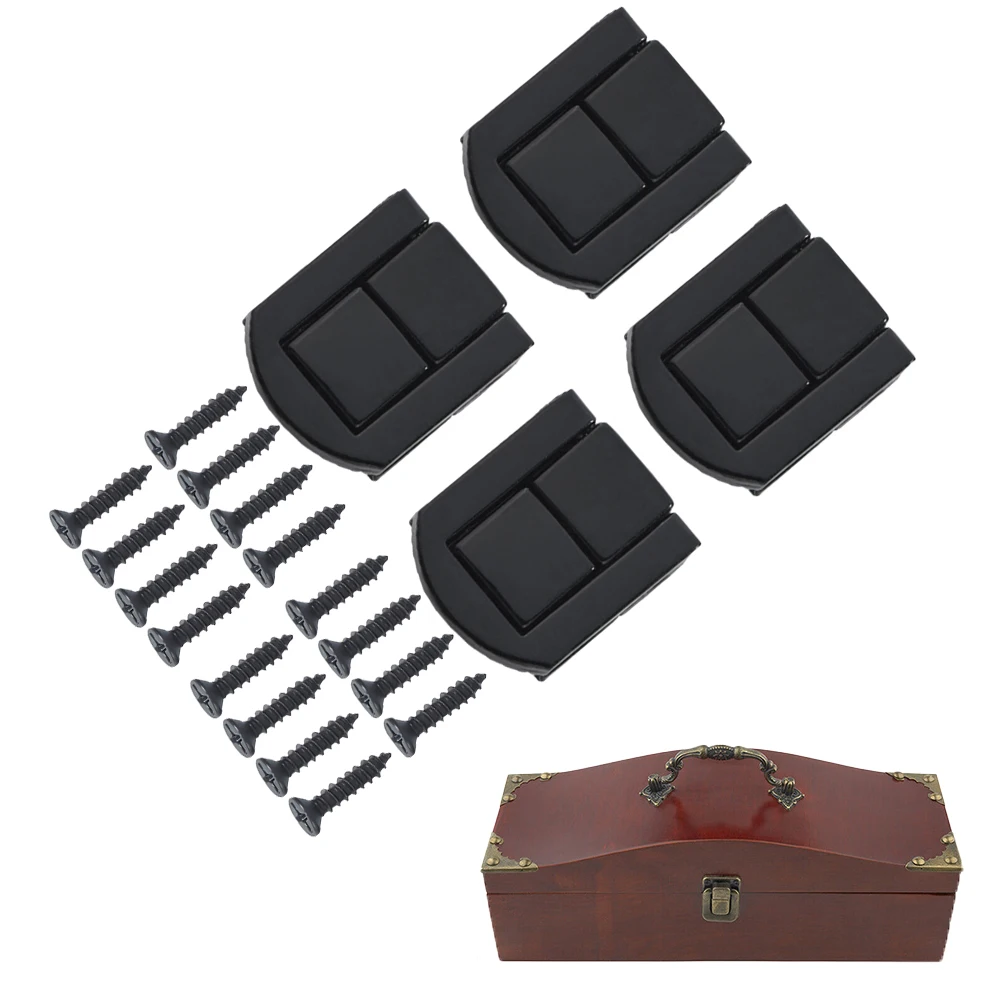 - Four black iron locks with vintage curved buckle design, measuring 2.5×2 cm, ideal for jewelry boxes or decorative cases with a rustic charm.