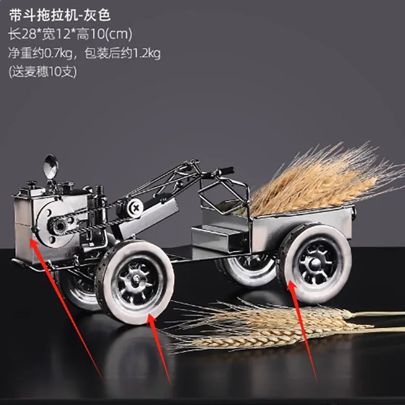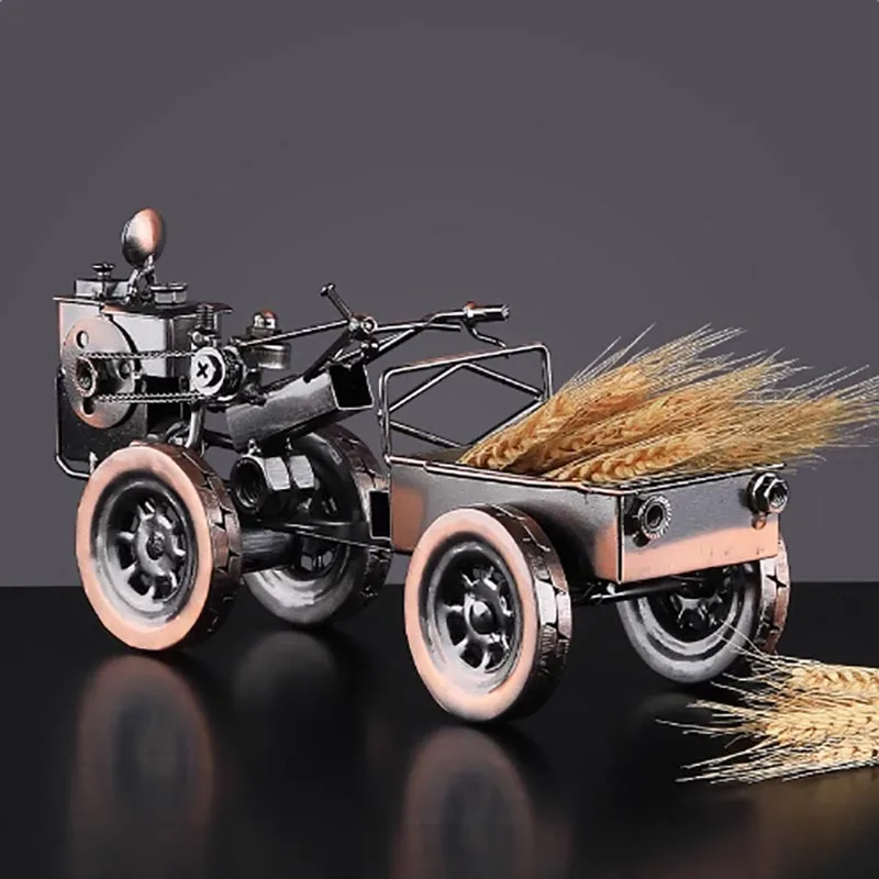 Imagine adding a touch of nostalgic charm to your living space with this exquisite vintage-inspired model tractor. Crafted from durable iron, it features a realistic, detailed design reminiscent of classic retro machinery. The elongated body, measuring approximately 28 centimeters long, 12 centimeters wide, and 10 centimeters tall, showcases an authentic engine area, vintage wheels with textured hubcaps, and a rustic finish that highlights its antique appeal. The charming copper or bronze tones blended with metallic silver create a timeless aesthetic. Perfect as a collectible, gift, or decorative accent, this piece seamlessly combines industrial craftsmanship with vintage elegance, bringing a warm, nostalgic atmosphere to your home, porch, or wine cabinet display.