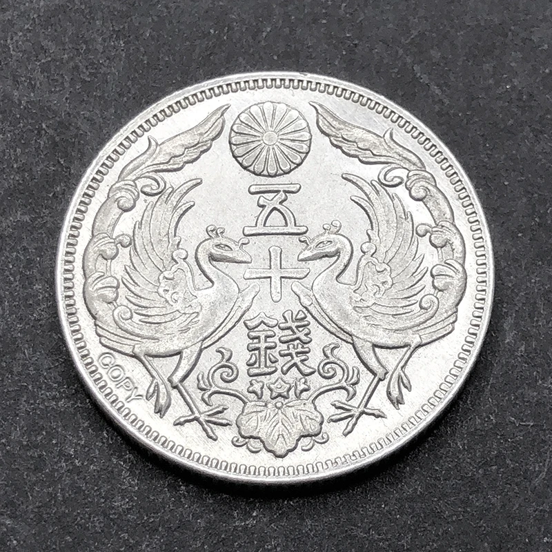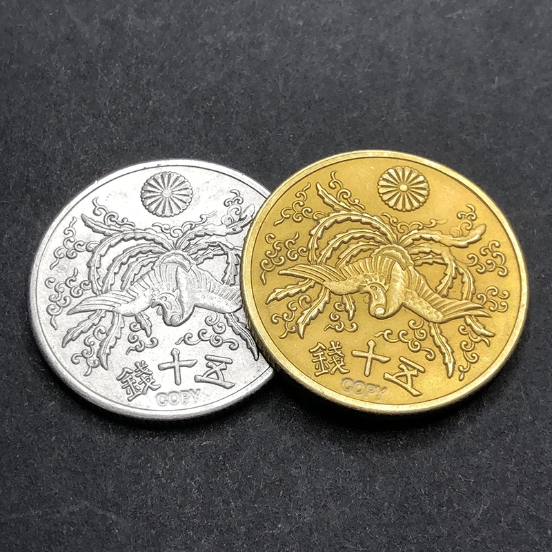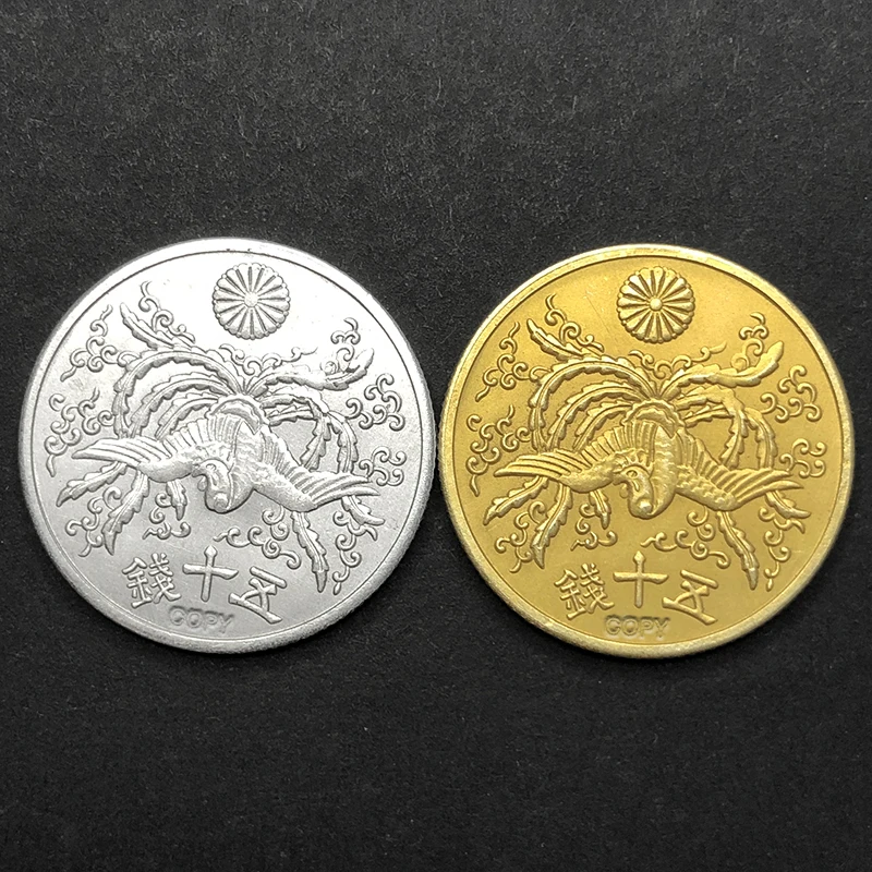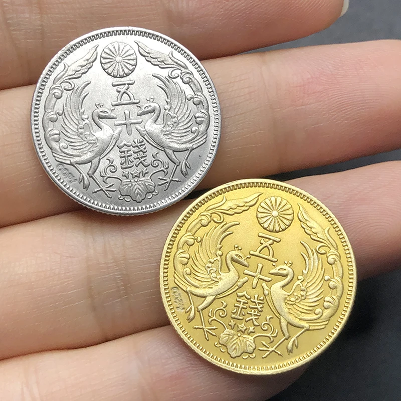 Elevate your collection with this vintage Japanese phoenix copper coin, measuring approximately 23.7mm in diameter. Crafted from durable copper, it features an intricately carved symmetrical phoenix design with detailed feathers, flowing tails, and a textured border with fine ridges. Offered in radiant gold and gleaming silver finishes, these coins showcase traditional Japanese artistry and craftsmanship, making them ideal for display or decorative purposes. Their vintage aesthetic reflects cultural symbolism of strength and rebirth, adding a touch of timeless elegance to any collection or home decor. A must-have for enthusiasts of Japanese heritage and finely detailed collectible coins.