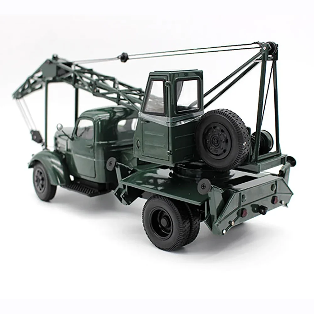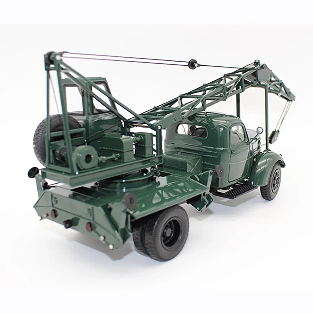 Discover this meticulously crafted 1:24 scale model of the vintage Jiefang CA10 crane, perfect for collectors and enthusiasts. With precise detailing, this model showcases the classic design of an old-fashioned engineering truck, painted in a rich dark green shade that highlights the craftsmanship’s depth. The surface features realistic panel lines, hinges, and a clear windshield, giving it an authentic vintage appearance. The model includes functional features such as opening side doors, engine cover, operating room door, and a foldable support rod. The crane arm is adjustable, allowing it to be raised, lowered, and rotated, with a freely rotating hook and base for dynamic display. Built from alloy, plastic, and rubber, it’s a true collector’s gem.