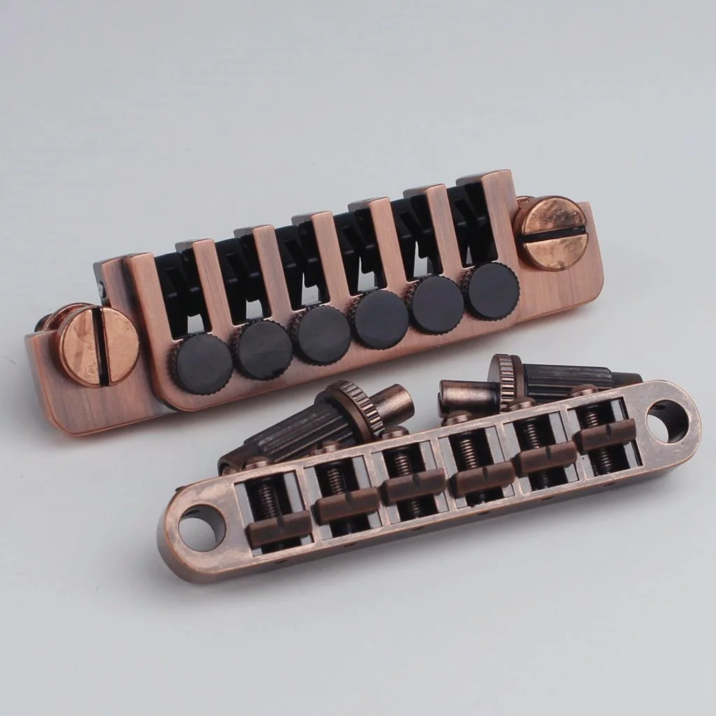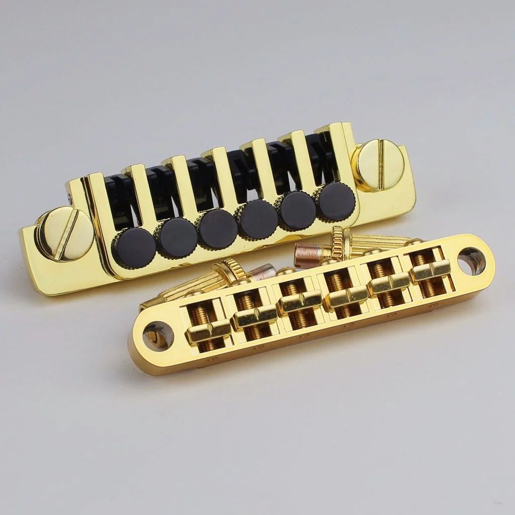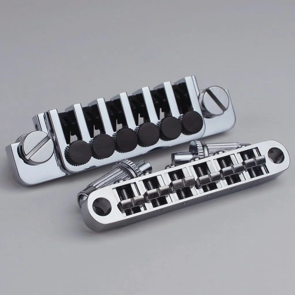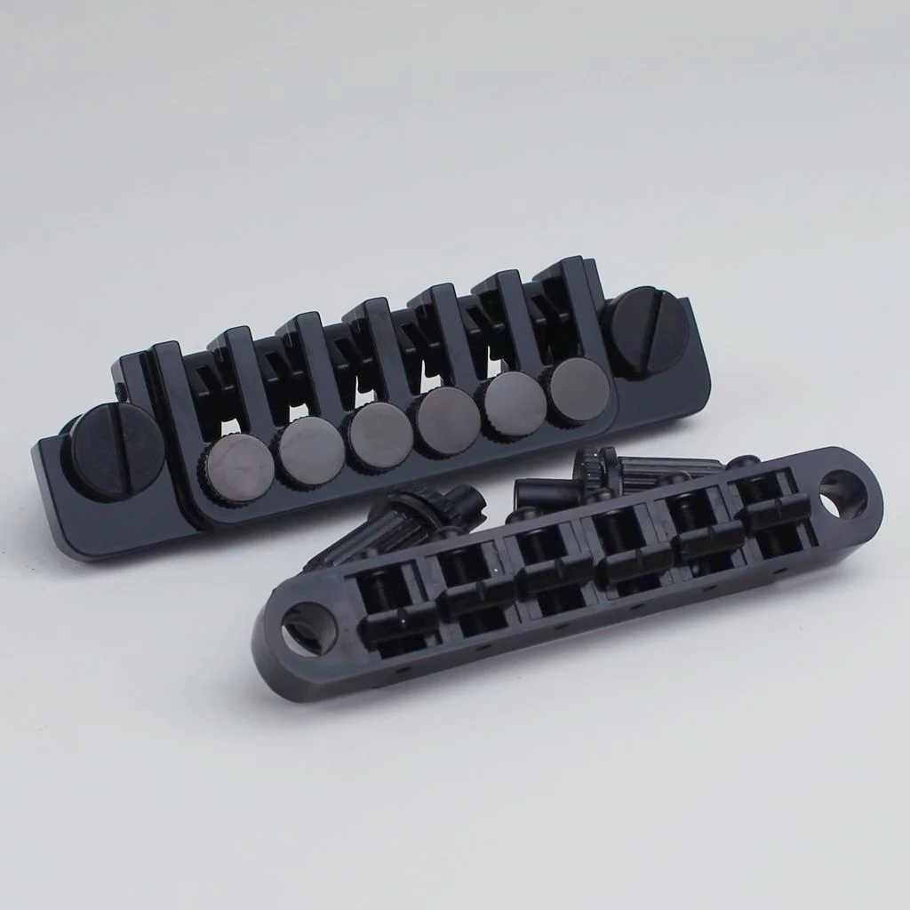 - Includes six adjustable saddles with black knobs, allowing precise string height and intonation adjustments to optimize sound and playability for LP-style guitars.